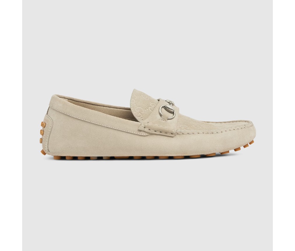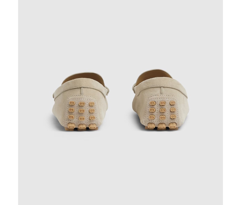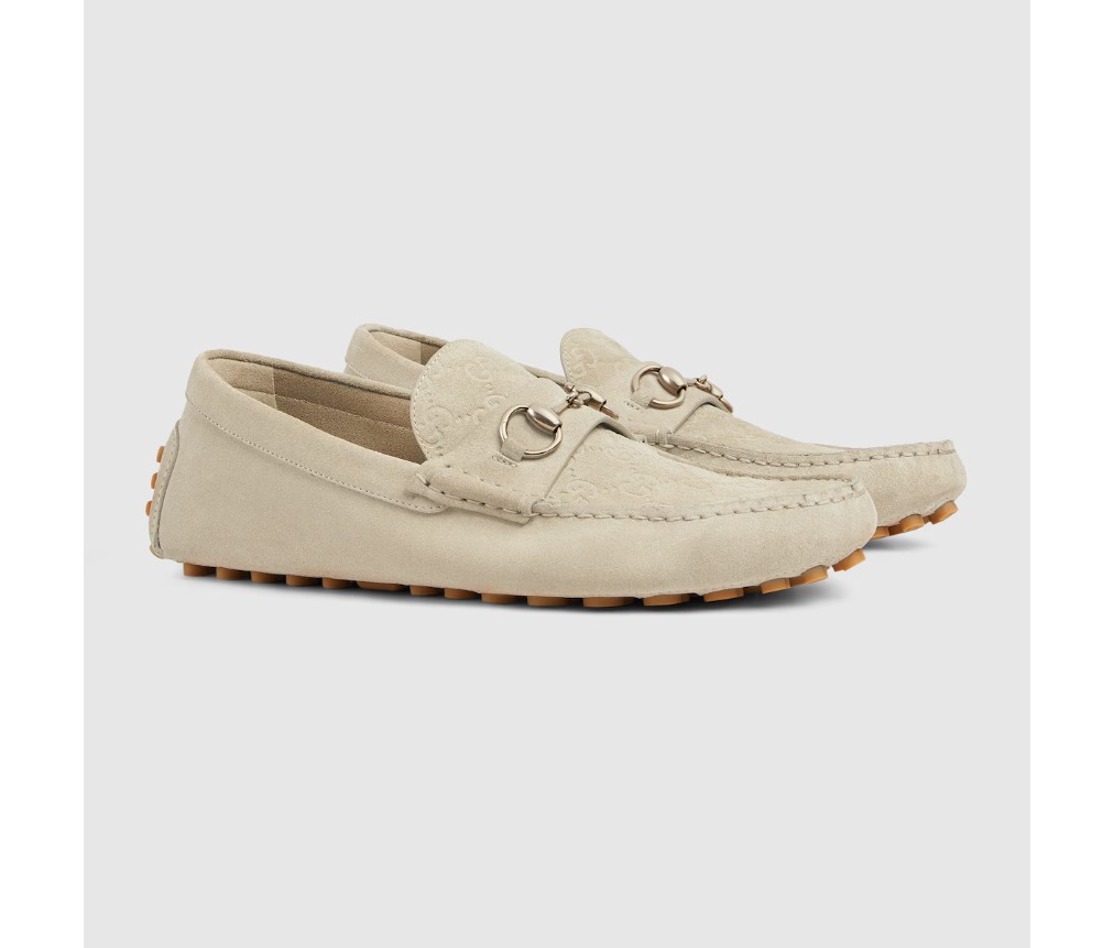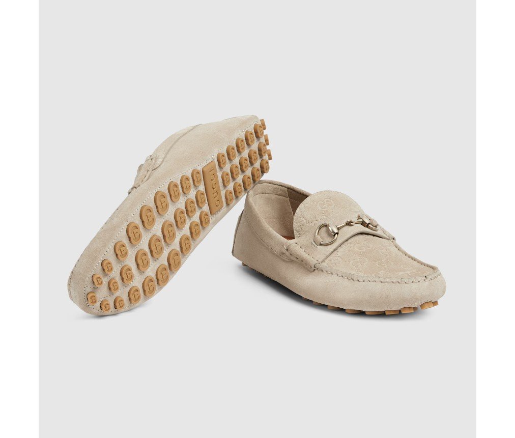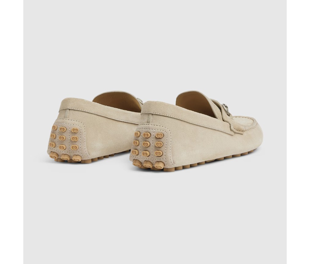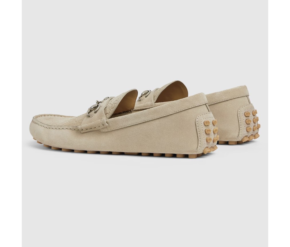 이탈리아 해안의 여름 분위기와 비치 클럽에서 영감을 받은 이 아이템은 구찌 리도 컬렉션의 일부입니다. 구찌의 승마 역사를 기리는 호스빗은 오랜 세월 동안 역사적인 상징으로 자리매김했습니다. 이 버전의 호스빗은 스웨이드 소재로 제작된 이 드라이버의 상징입니다.