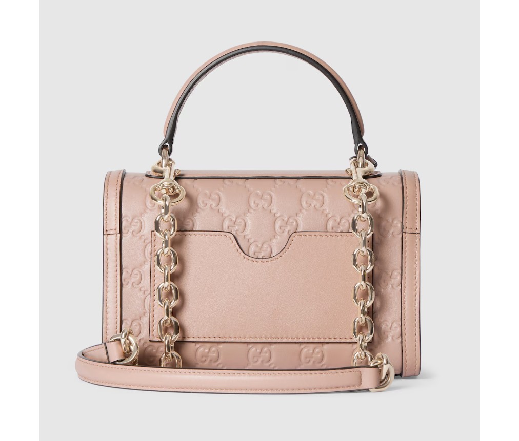 – 핑크 베이지 엠보싱 GG 가죽