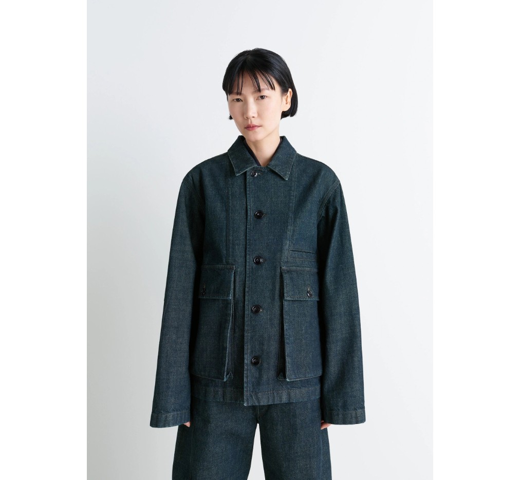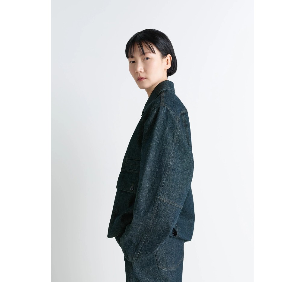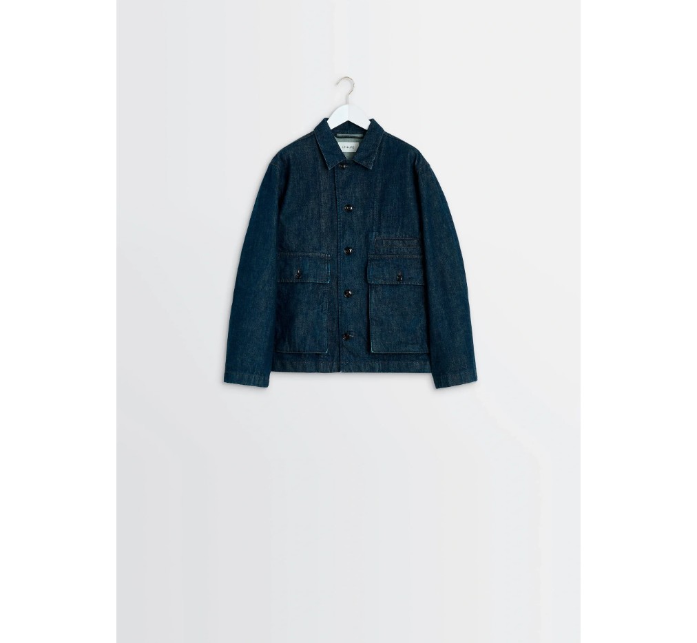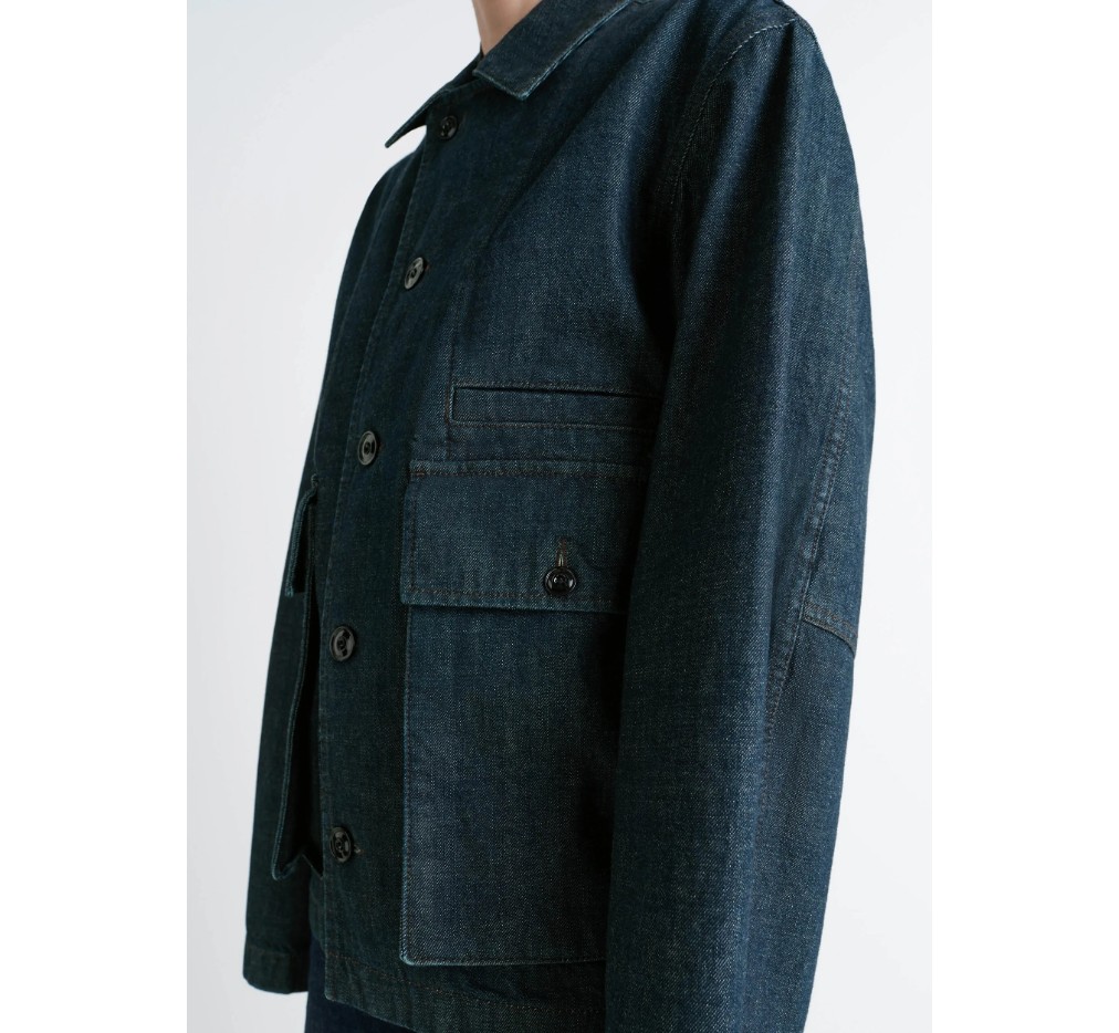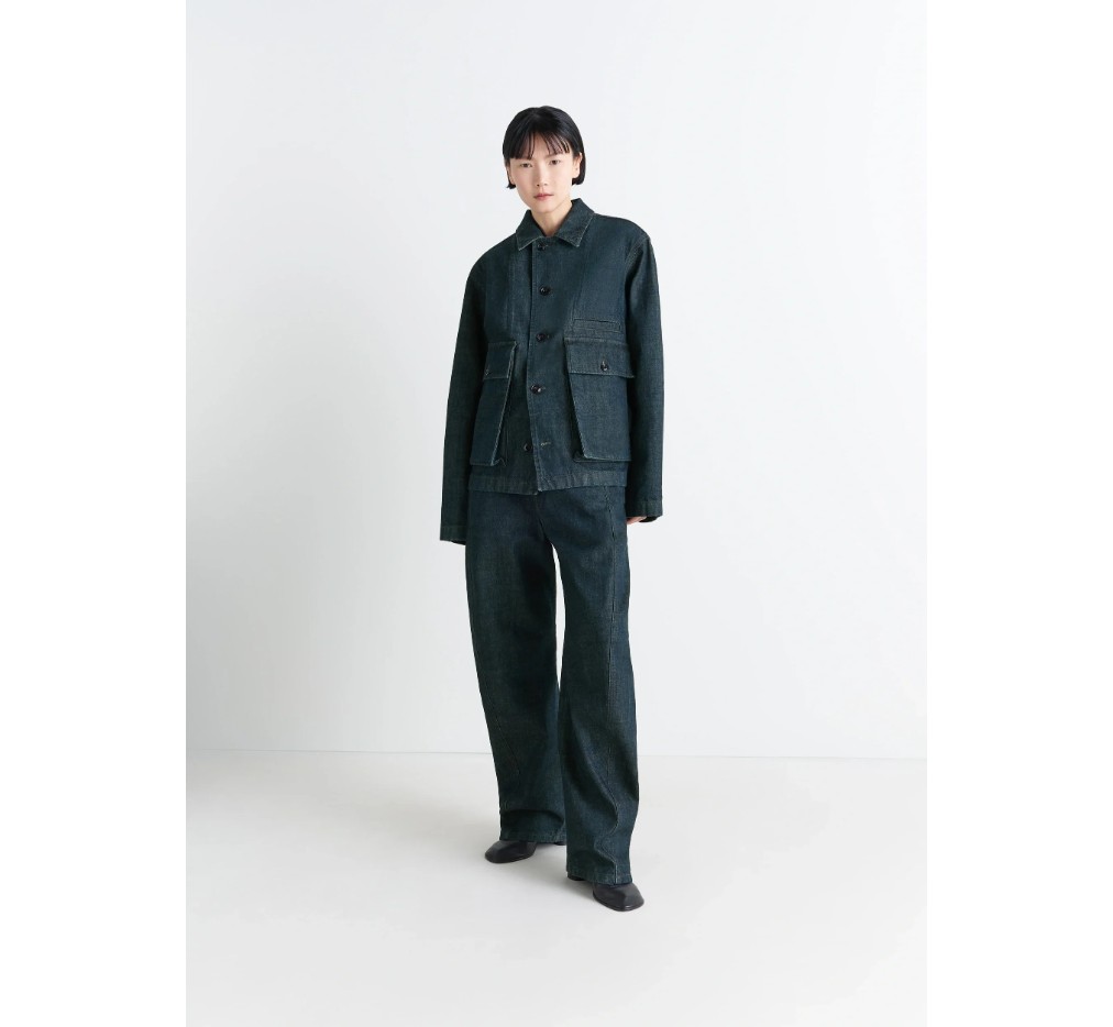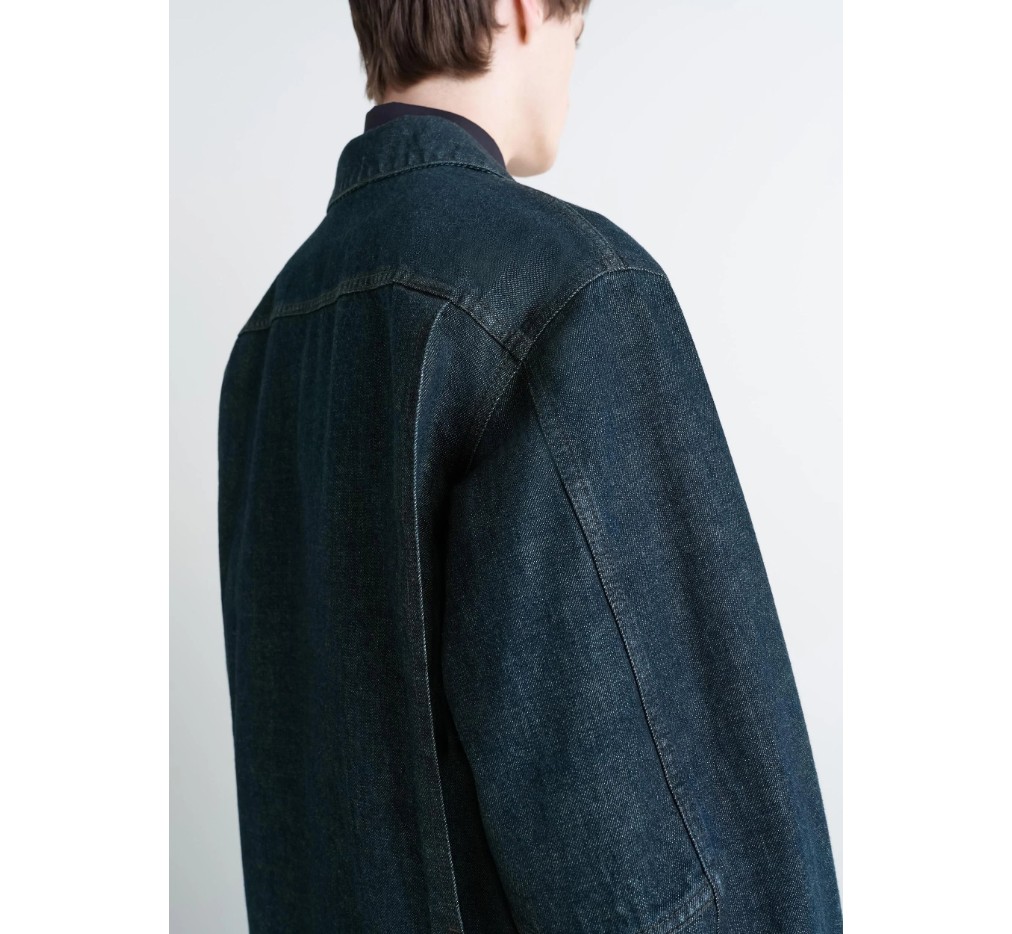 이 박시 재킷은 르메르 워크웨어 컬렉션에서 가장 아이코닉한 유니섹스 아이템입니다. 르메르의 상징적인 소재인 두꺼운 데님을 딥 블랙 워싱 기법으로 제작했습니다.