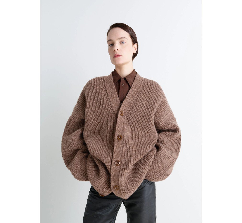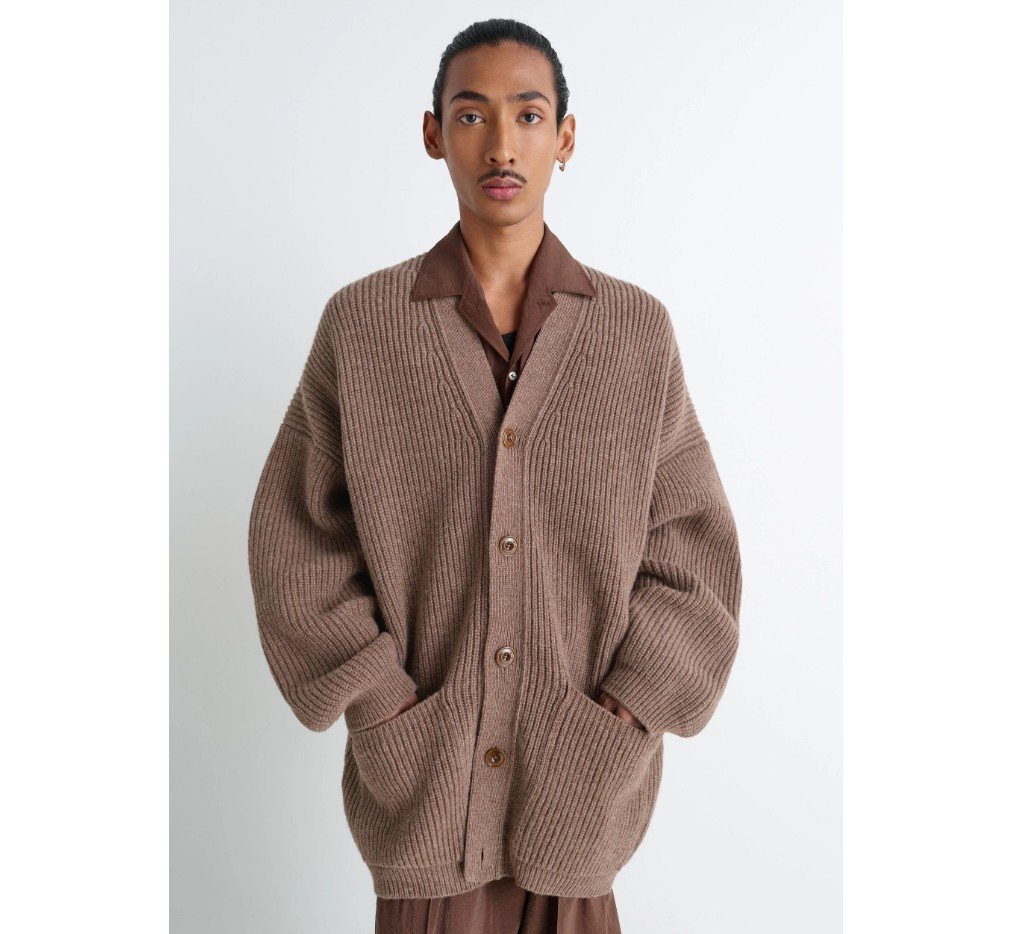 셰틀랜드 울로 만든, 밀도가 높으면서도 따뜻한 니트 소재의 이 리브 카디건은 진정한 아웃도어 의류로 디자인되었습니다.