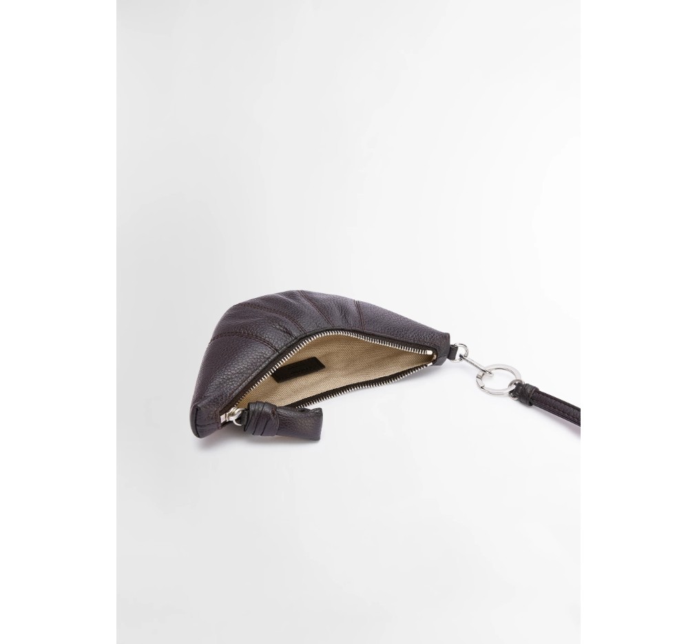 부드러운 그레인 가죽 소재의 크로스바디 크루아상 동전 지갑