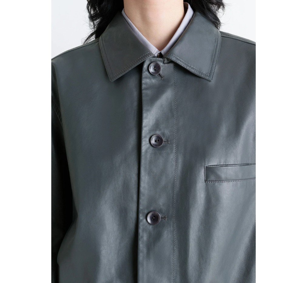이 크롭 블루종은 르메르 워크웨어 컬렉션의 상징적인 아이템입니다. 르메르의 시그니처 소재인 두꺼운 데님 소재에 딥 블랙 워싱 기법을 더해 제작되었습니다.