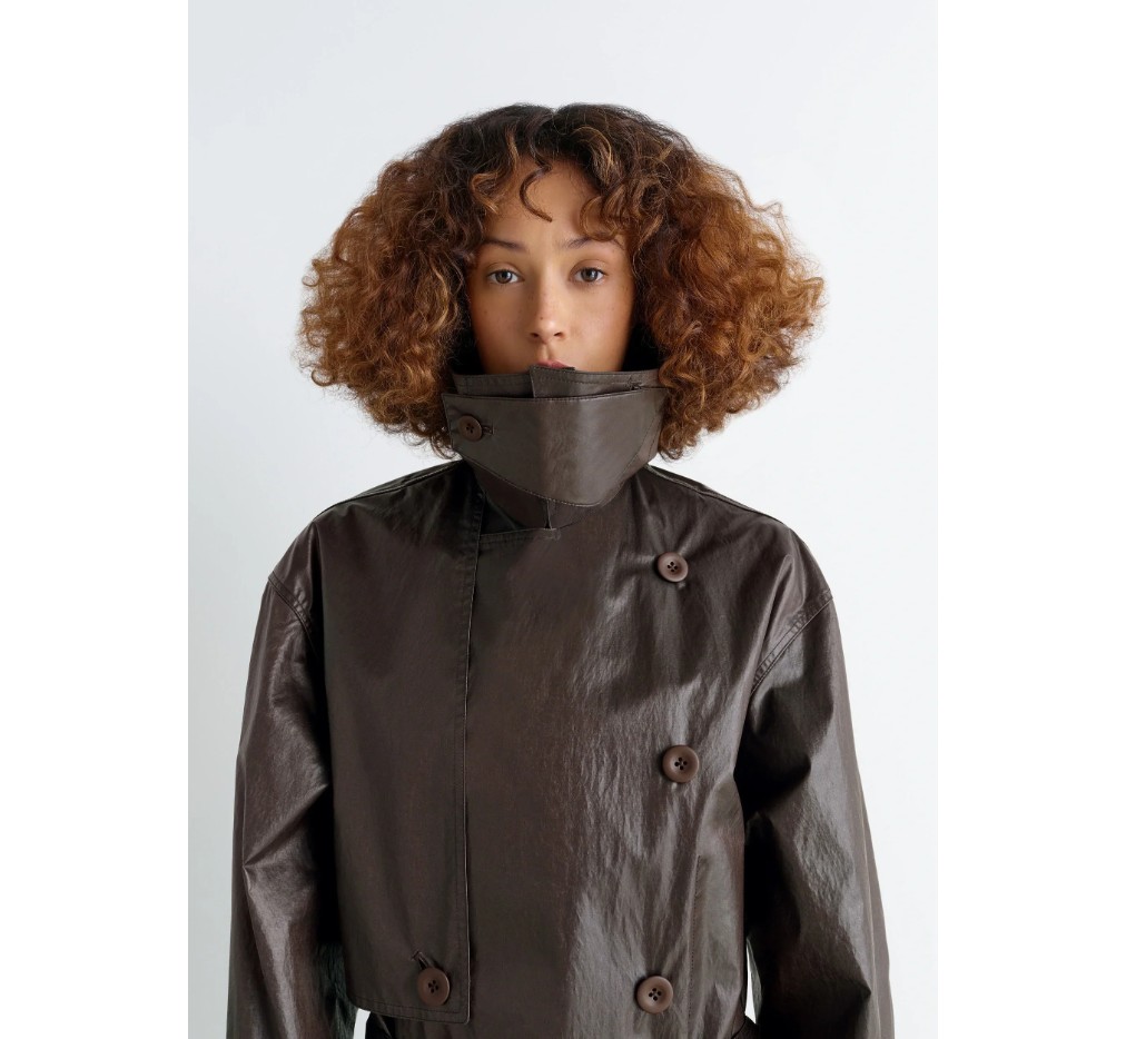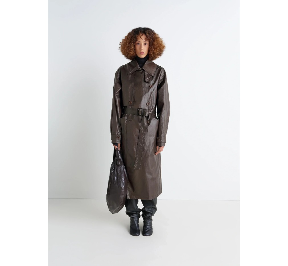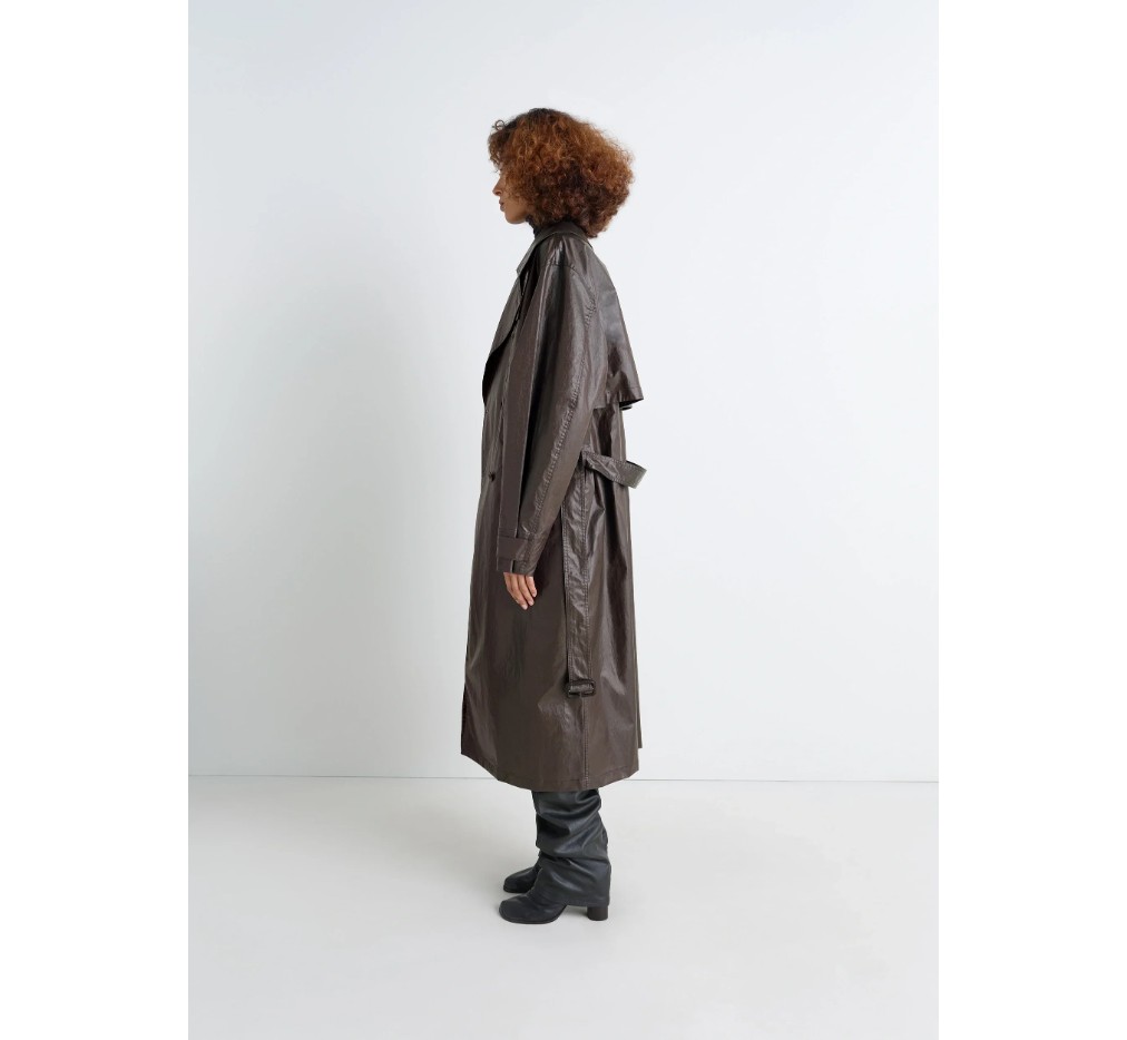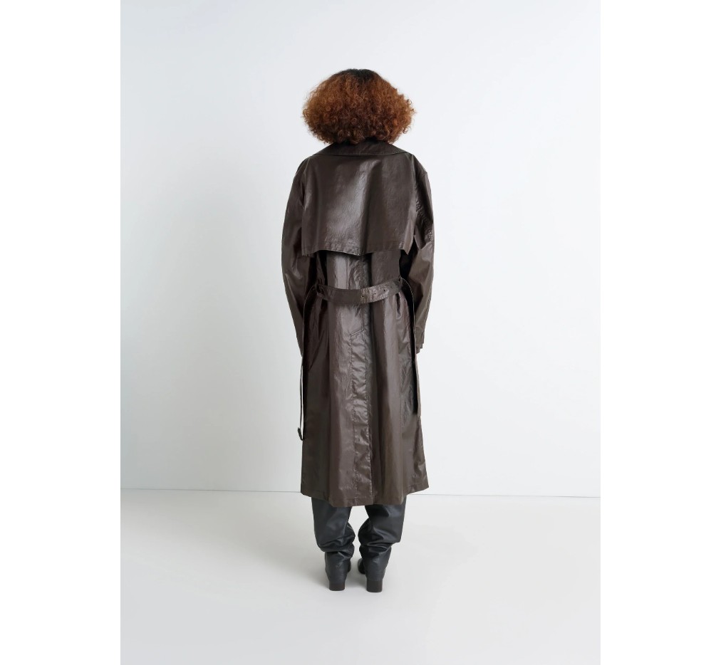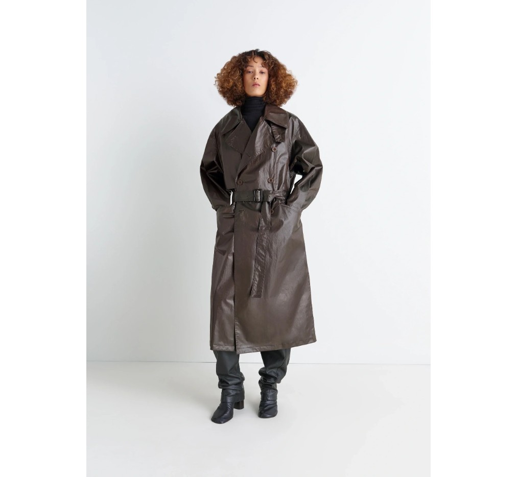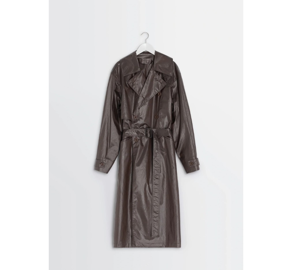 트로피컬 폴리울 소재의 오버사이즈 트렌치코트