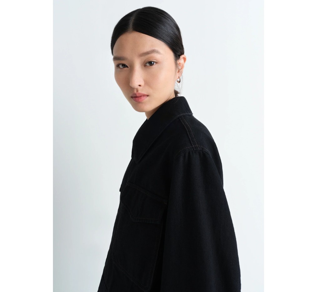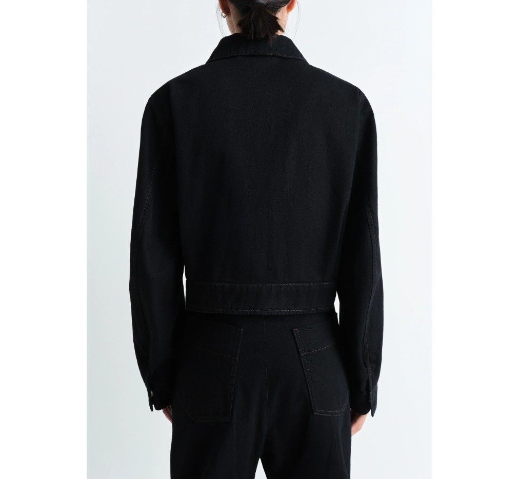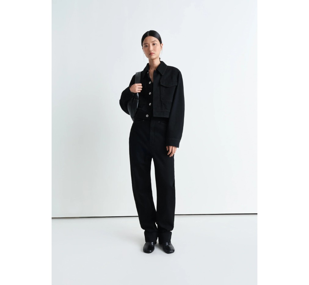이 새로운 투 포켓 크롭 재킷은 르메르(LEMAIRE) 컬렉션에서 흔히 볼 수 있는 헤비 데님 소재로 제작되었으며, 트윌 직조와 딥 블랙 워싱이 특징입니다. 크롭된 허리와 여유로운 핏으로, 앞면에 두 개의 넉넉한 플랩 패치 포켓과 히든 스냅 버튼이 특징이며, 커프스 마감에도 사용되었습니다. 살짝 대조적인 스티치 디테일이 이 재킷의 구조를 더욱 돋보이게 하며, 안감이 없어 중간 시즌에 완벽한 아이템이 될 것입니다.