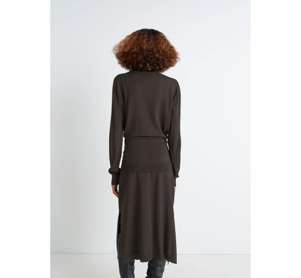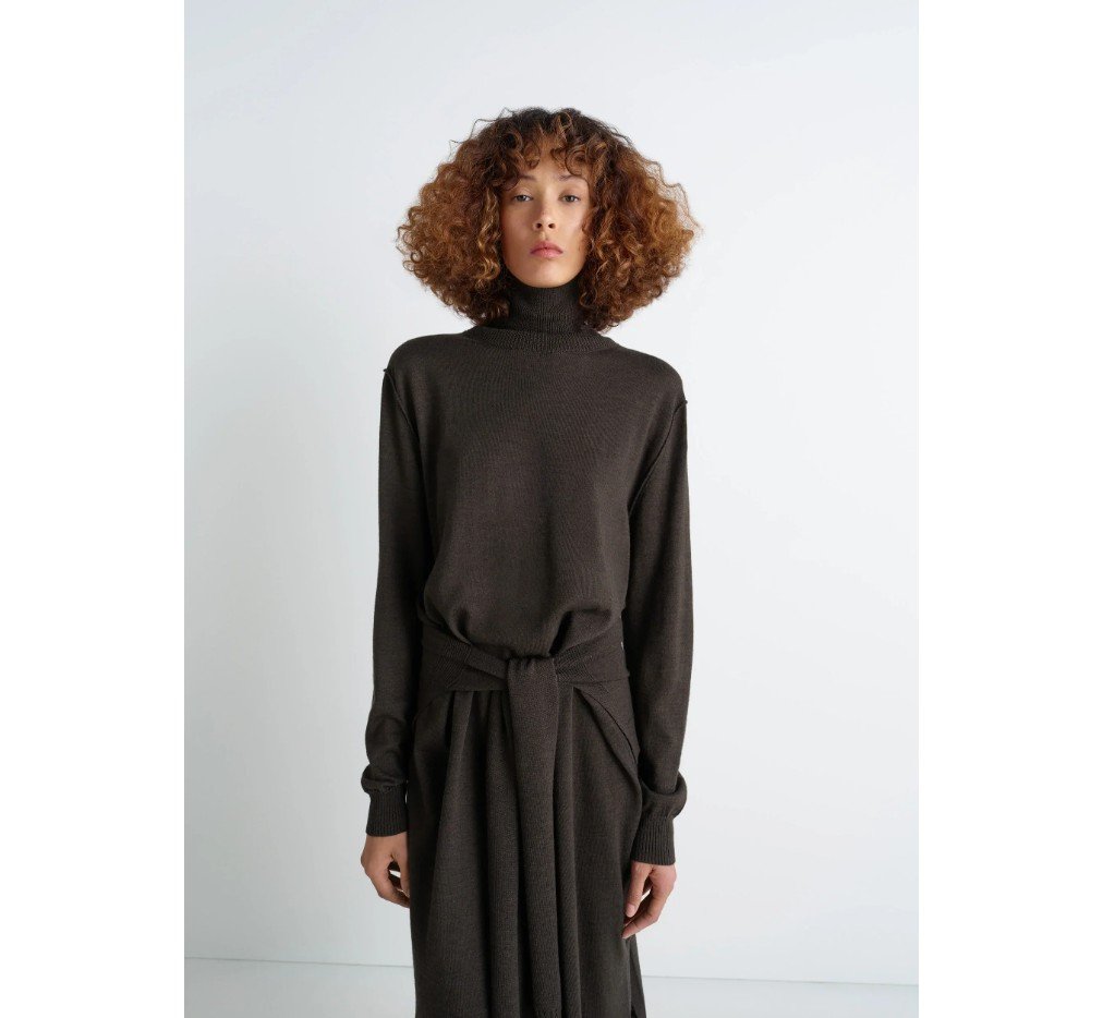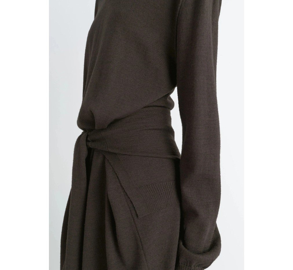 이 트롱프뢰유 드레스는 르메르의 움직임에 대한 애정을 반영하는 진화하는 모듈형 옷장의 일부입니다. 뒷면에는 스웨터코리아(sweaterkorea)의 타이 어라운드 패널이 특징이며, 건조하면서도 부드러운 메리노 울 혼방 소재로 제작되었습니다.