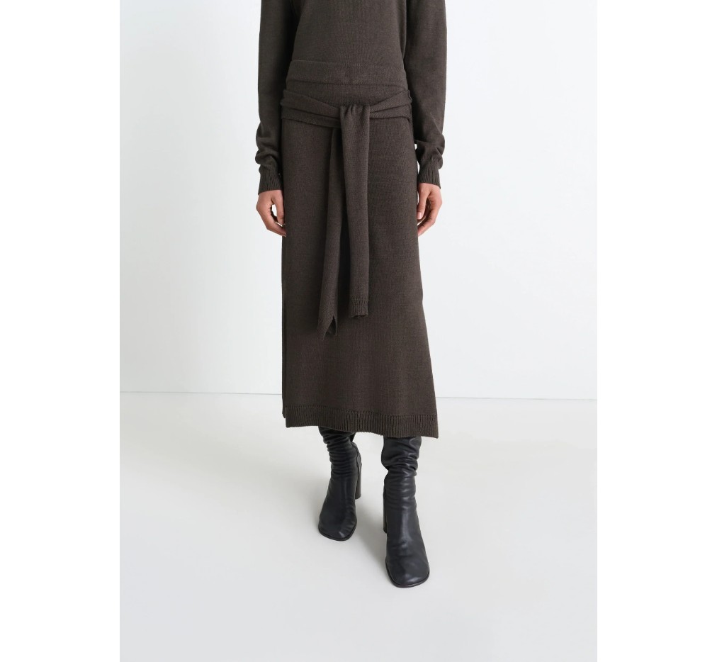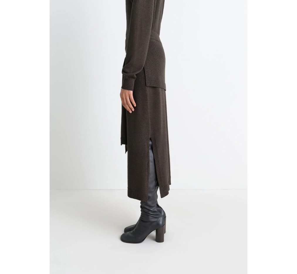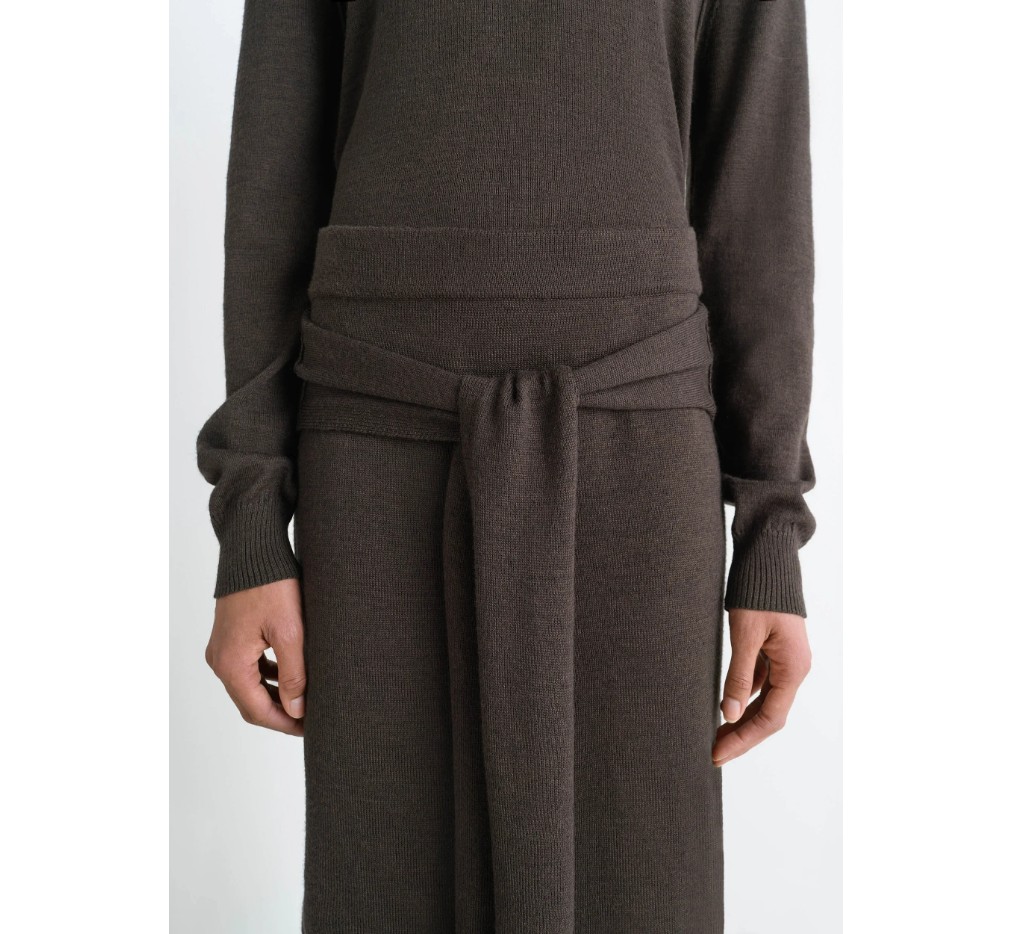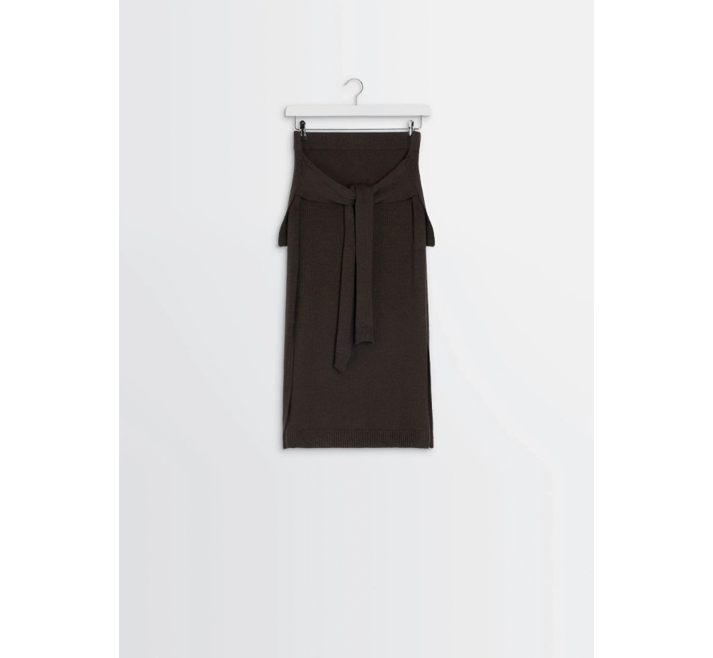 이 트롱프뢰유 스커트는 르메르의 움직임에 대한 애정을 반영하는, 진화하는 모듈형 옷장의 일부입니다. 뒷면에는 스웨터코리아(sweaterkorea)의 타이 어라운드 패널이 특징이며, 건조하면서도 부드러운 메리노 울 혼방 소재로 제작되었습니다.