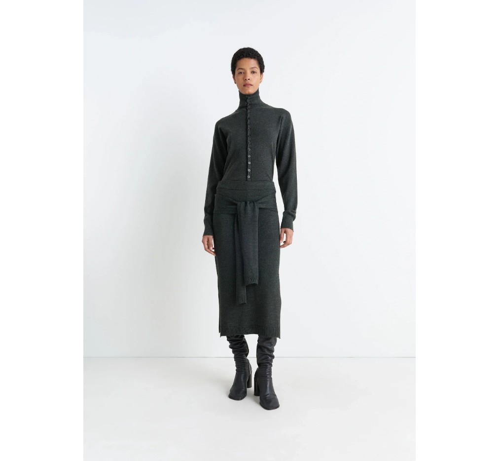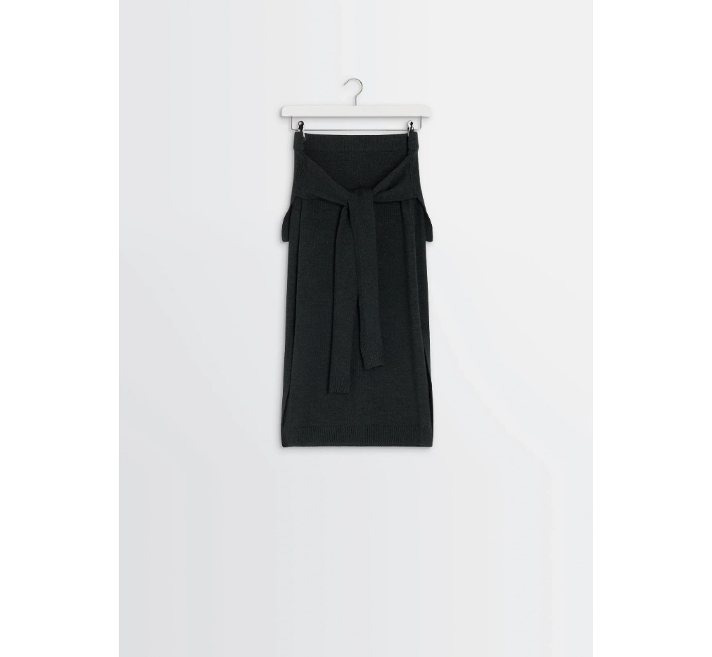 이 트롱프뢰유 스커트는 르메르의 움직임에 대한 애정을 반영하는, 진화하는 모듈형 옷장의 일부입니다. 뒷면에는 스웨터코리아(sweaterkorea)의 타이 어라운드 패널이 특징이며, 건조하면서도 부드러운 메리노 울 혼방 소재로 제작되었습니다.