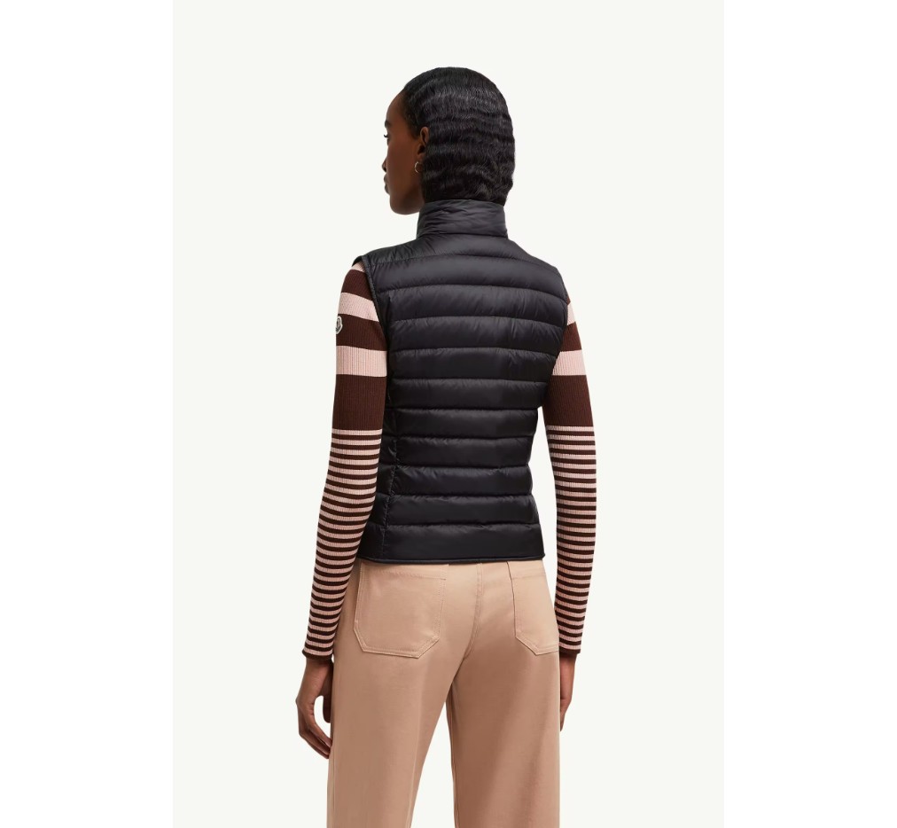 리안 질레는 슬림하고 여성스러운 핏으로, 기온이 떨어질 때 티셔츠 위에 입거나 아우터 안에 입기 좋습니다. 하이넥 디자인과 가슴 부분의 은은한 로고 패치가 특징입니다.