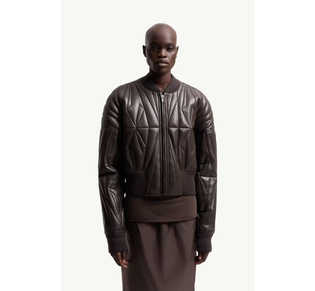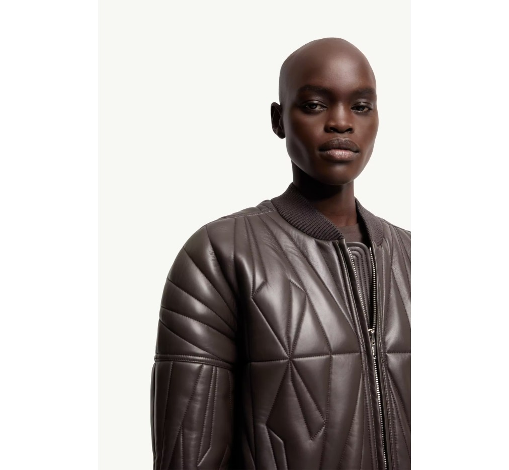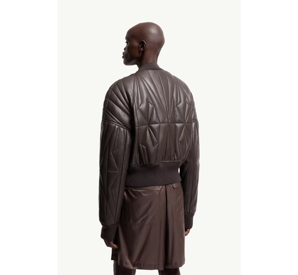 건축 형태에서 영감을 받은 지오카모 플라이트 봄버 재킷은 몽클레르와 릭 오웬스의 미학을 집약적으로 보여줍니다. 부드러운 나파 가죽으로 제작된 이 재킷은 기하학적 무늬가 양각으로 새겨져 있습니다. 크롭 실루엣과 볼륨감 있는 어깨 라인이 재킷의 대담하고 조각적인 특징을 더욱 돋보이게 합니다.