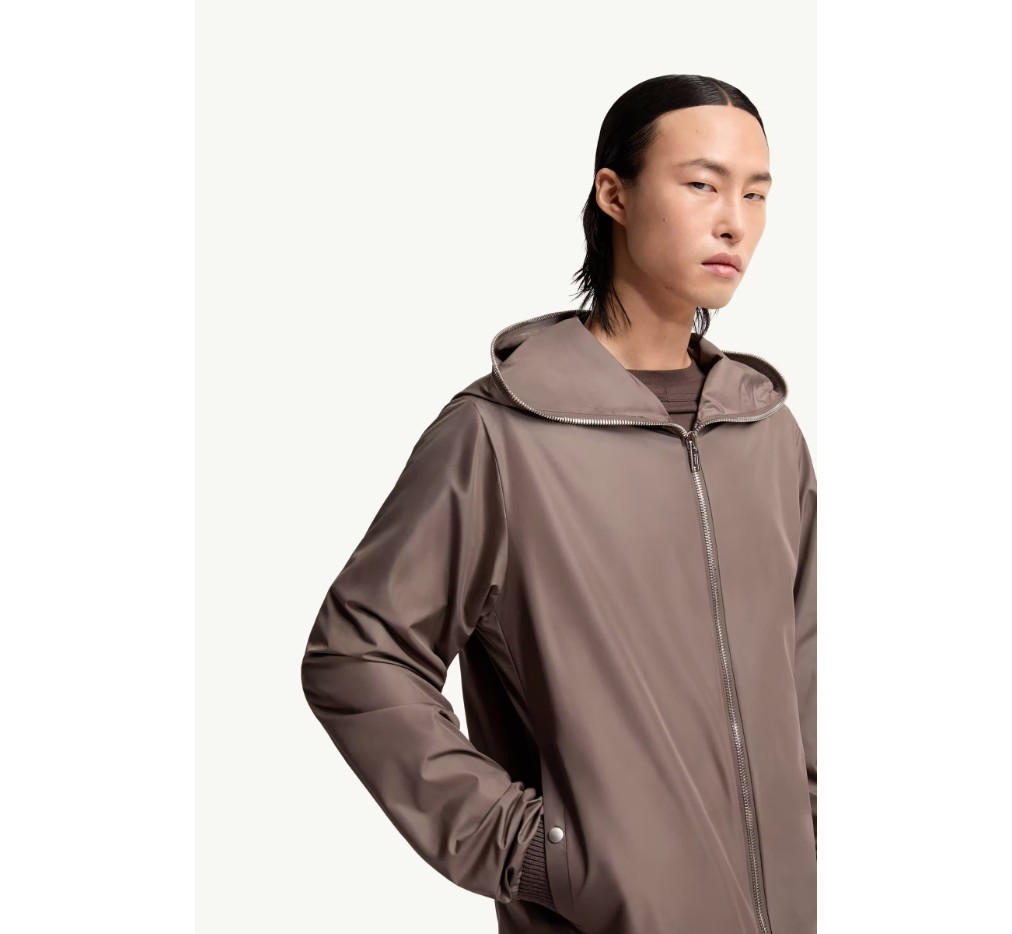 콘크리트의 강렬하면서도 아름다운 아름다움을 연상시키는 몽클레르 + 릭 오웬스 지퍼락 윈드브레이커는 컬렉션의 간결한 미학을 구현합니다. 산뜻한 태피터 소재로 제작된 이 가벼운 디자인은 부드러운 울 혼방 트리밍과 후드 부분의 지퍼 디테일로 완성됩니다. 뒷면의 리본을 이용해 어깨에 맬 수도 있습니다.