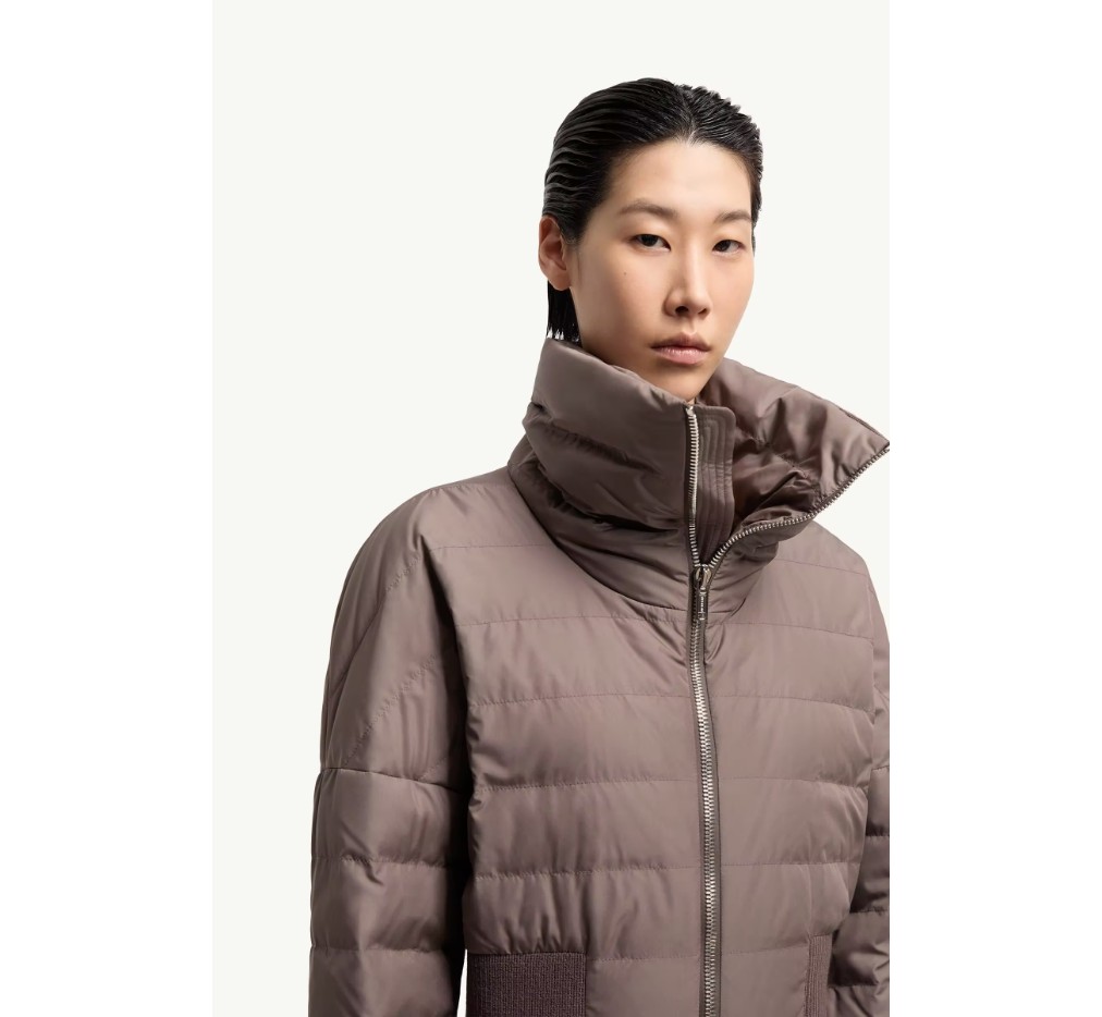 미니멀하면서도 웅장한 몽클레르 + 릭 오웬스 크롭 다운 재킷은 건축적인 기하학적 형태를 크롭 실루엣으로 응축했습니다. 은은한 광택이 도는 산뜻한 태피터 소재와 부드러운 울 혼방 트리밍을 사용하여 대비를 살렸습니다. 목 부분을 입체적으로 잡아주는 터틀넥에서 오픈넥으로 변형 가능한 컨버터블 칼라가 디자인을 완성합니다.