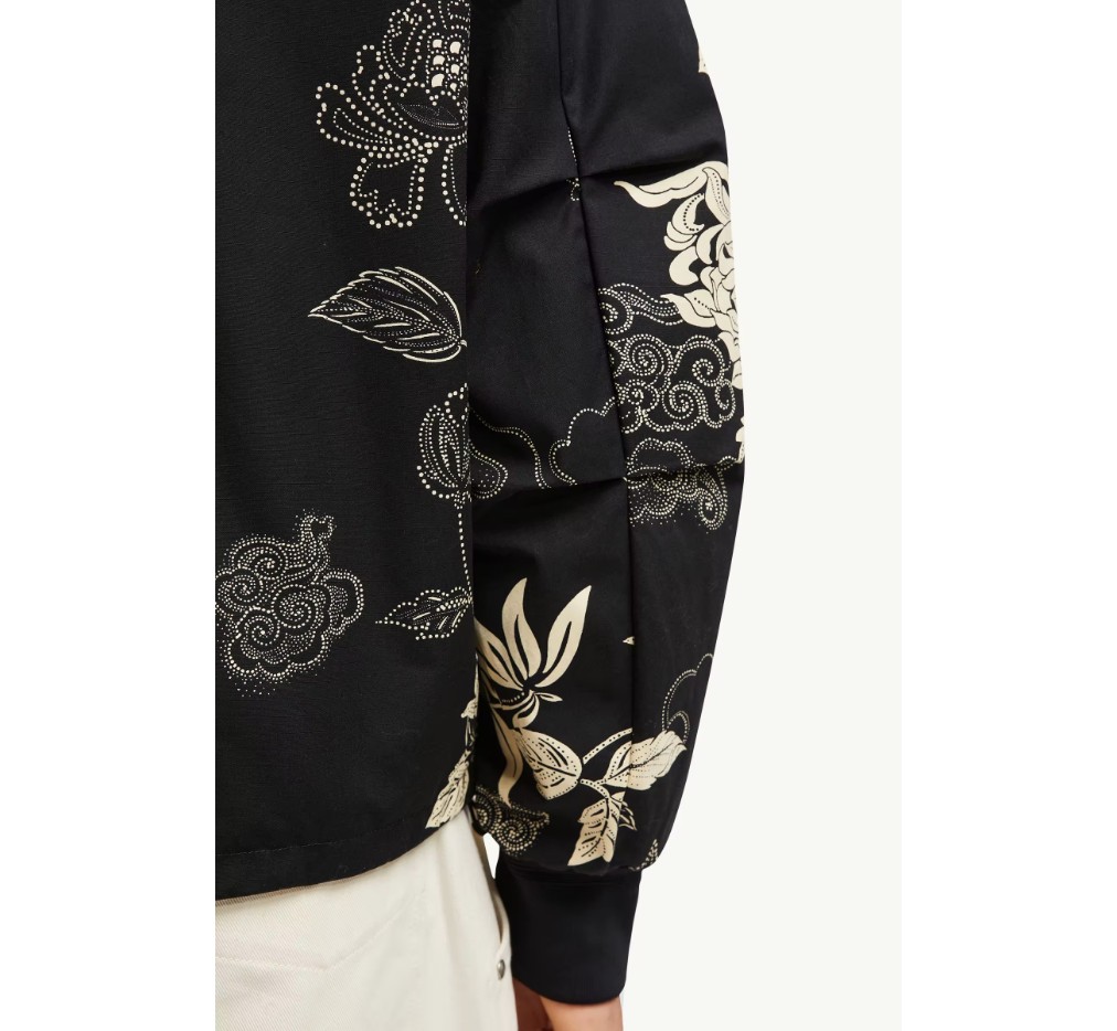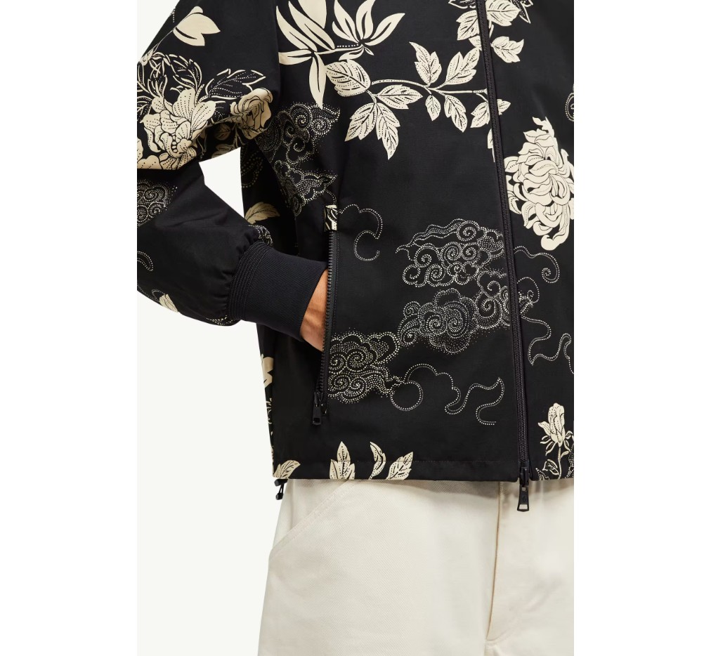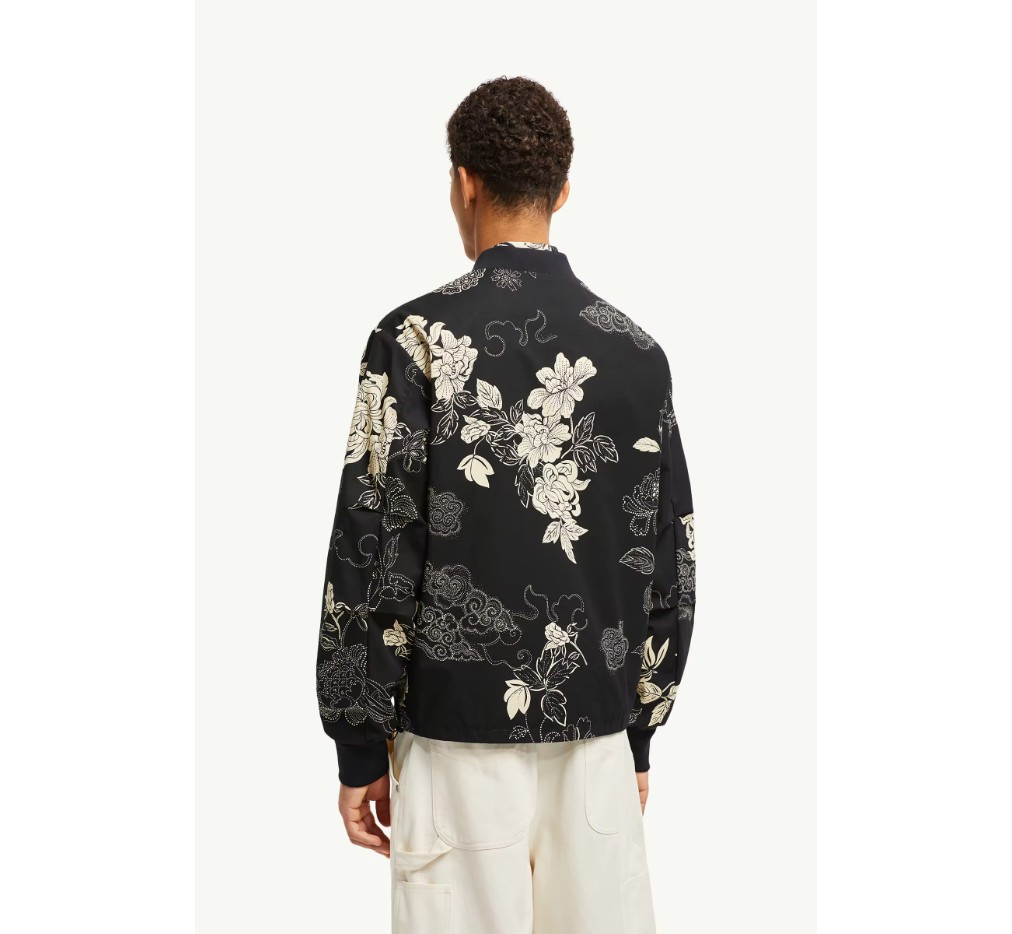 양면으로 착용 가능한 반데아 봄버 재킷은 한 면에는 꽃무늬 프린트, 다른 면에는 단색 프린트가 특징입니다. 따뜻한 날씨에 실용적인 이 재킷은 가볍고 발수 처리된 나일론 소재로 제작되었습니다. 프린트 면은 같은 디자인의 셔츠나 반바지와 함께 착용하면 여름철에 어울리는 스타일을 연출할 수 있습니다.