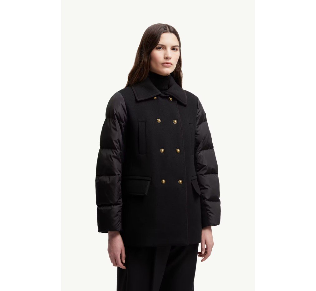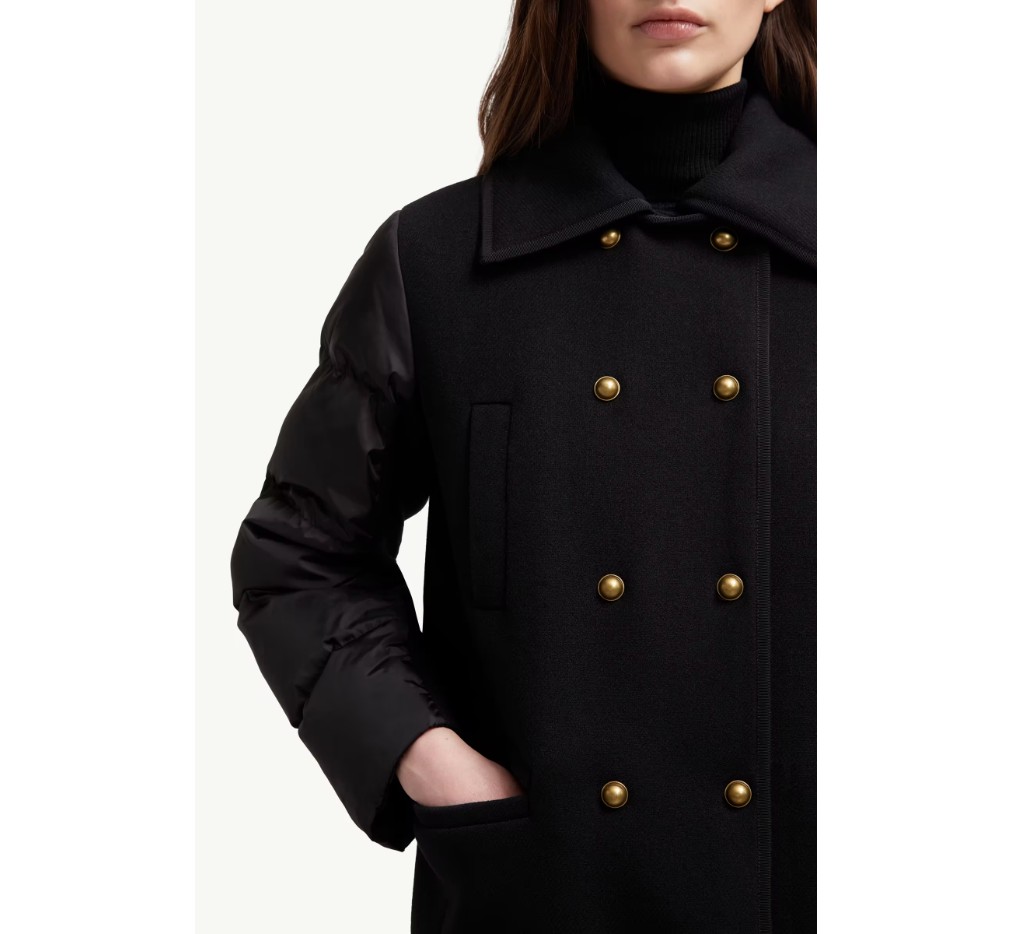 샤일로 다운 재킷은 전통과 현대가 조화를 이룬 제품입니다. 몸통은 울 트윌 소재로, 소매는 퀼팅 나일론 소재로 제작되었습니다. 클래식 오버코트에서 영감을 받은 이 디자인은 더블 브레스트 실루엣에 포인트 칼라가 특징입니다.