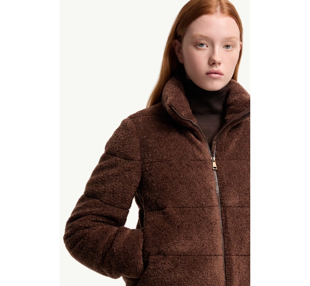 질감과 대비를 탐구하는 세드레 숏 다운 재킷은 부드러운 테디 소재와 가벼운 나일론 소재를 조화롭게 사용했습니다. 스탠드 칼라 디자인으로 보온성을 높였으며, 주름 장식 밑단은 여성스러운 마무리를 더합니다.