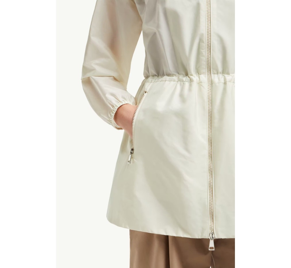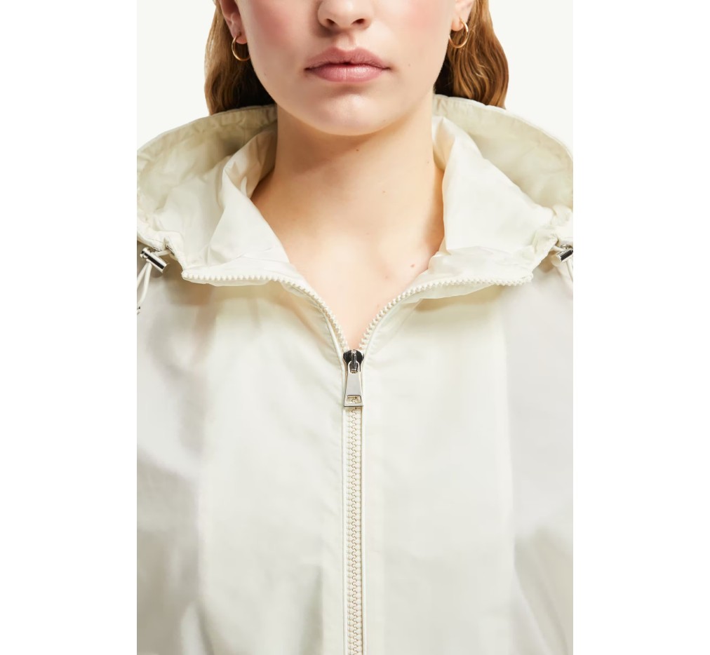 여름철에 딱 맞는 시원하고 통기성 좋은 Wete 재킷은 여성스러움과 실용성을 모두 갖추고 있습니다. 재활용 나일론 소재로 제작된 후드 재킷은 실크처럼 부드럽고 발수 처리된 질감을 자랑합니다. 몸에 꼭 맞는 허리선과 주름 잡힌 실루엣이 여성스러운 매력을 더합니다.