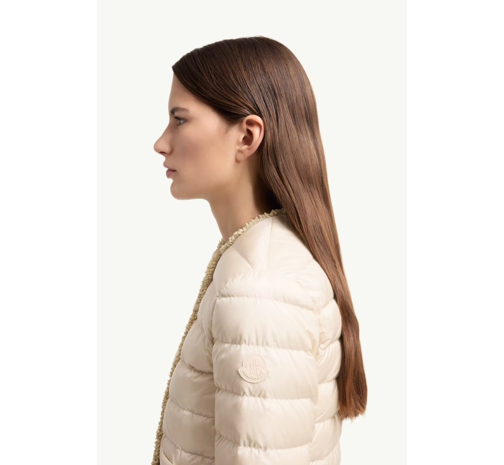 질감 대비와 세련된 라인이 돋보이는 플뢰르(Fleurs)는 부클 트리밍과 둥근 네크라인이 조화를 이룹니다. 간절기에 제격인 이 패딩 재킷은 발수 기능과 가벼운 보온성을 자랑하는 롱그 세종(longue saison) 나일론 소재로 제작되었습니다. 빈티지 감성이 담긴 하드웨어 장식이 디자인을 완성합니다.