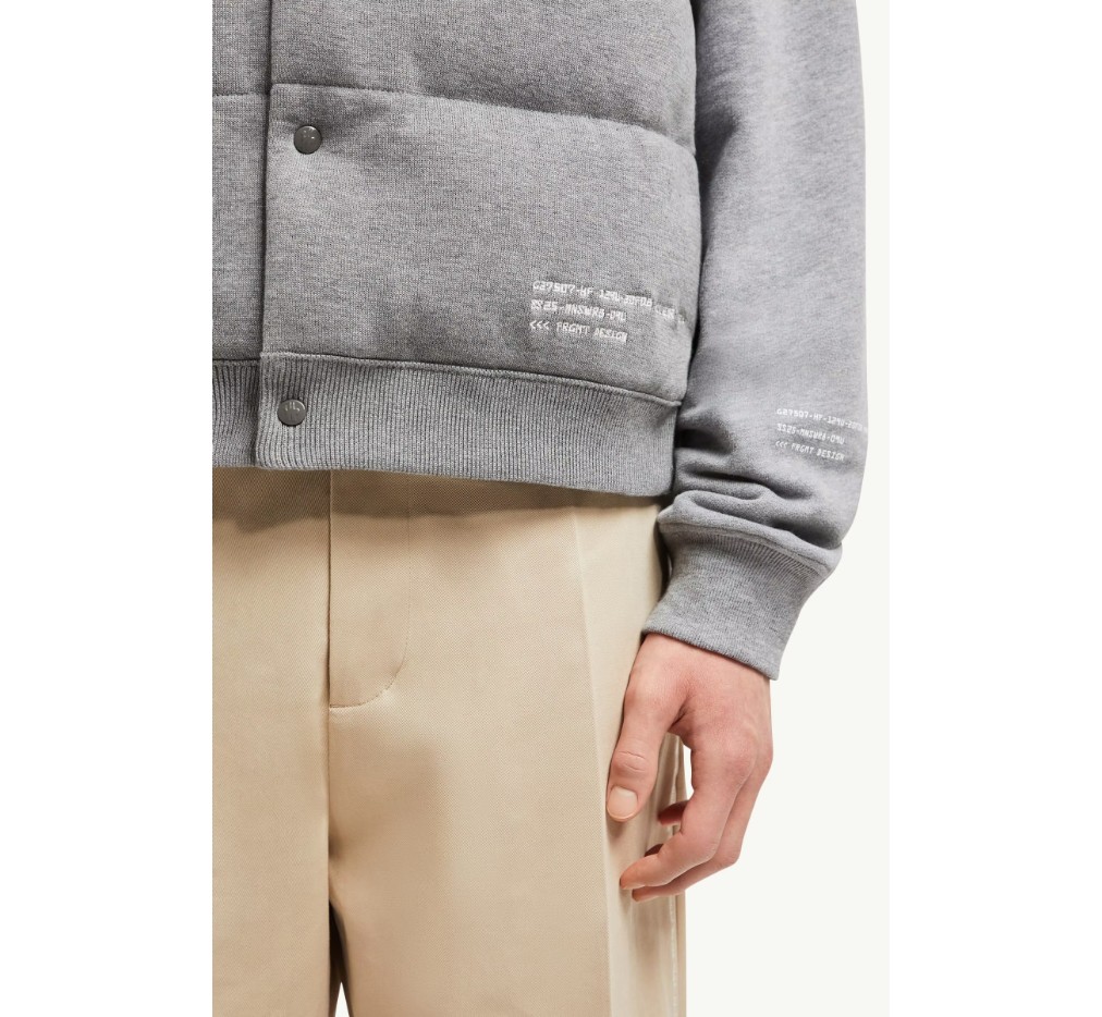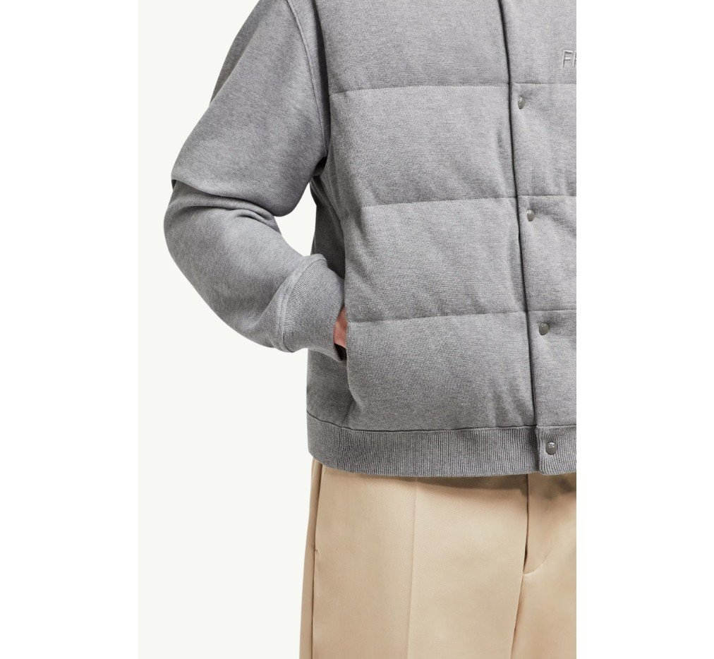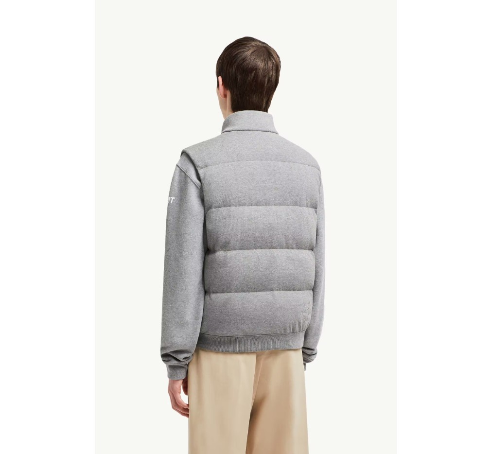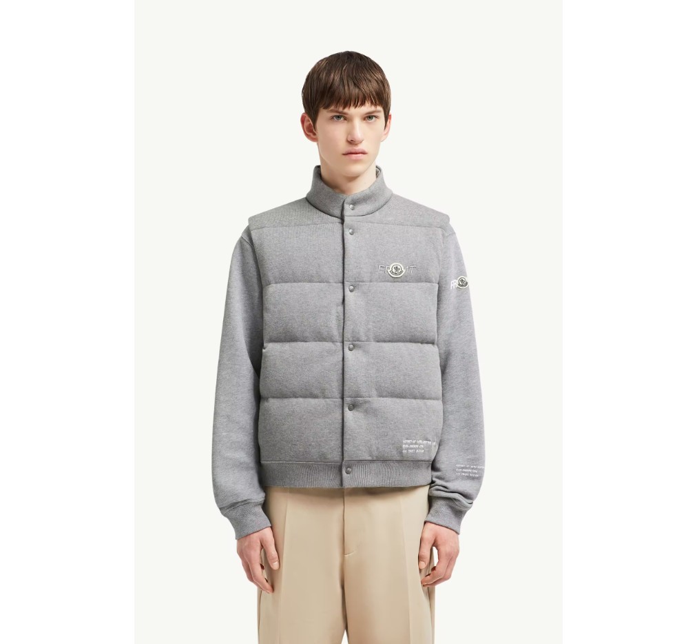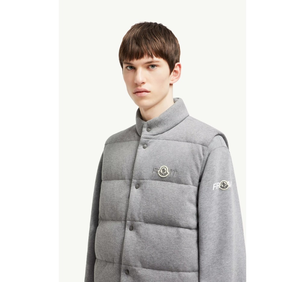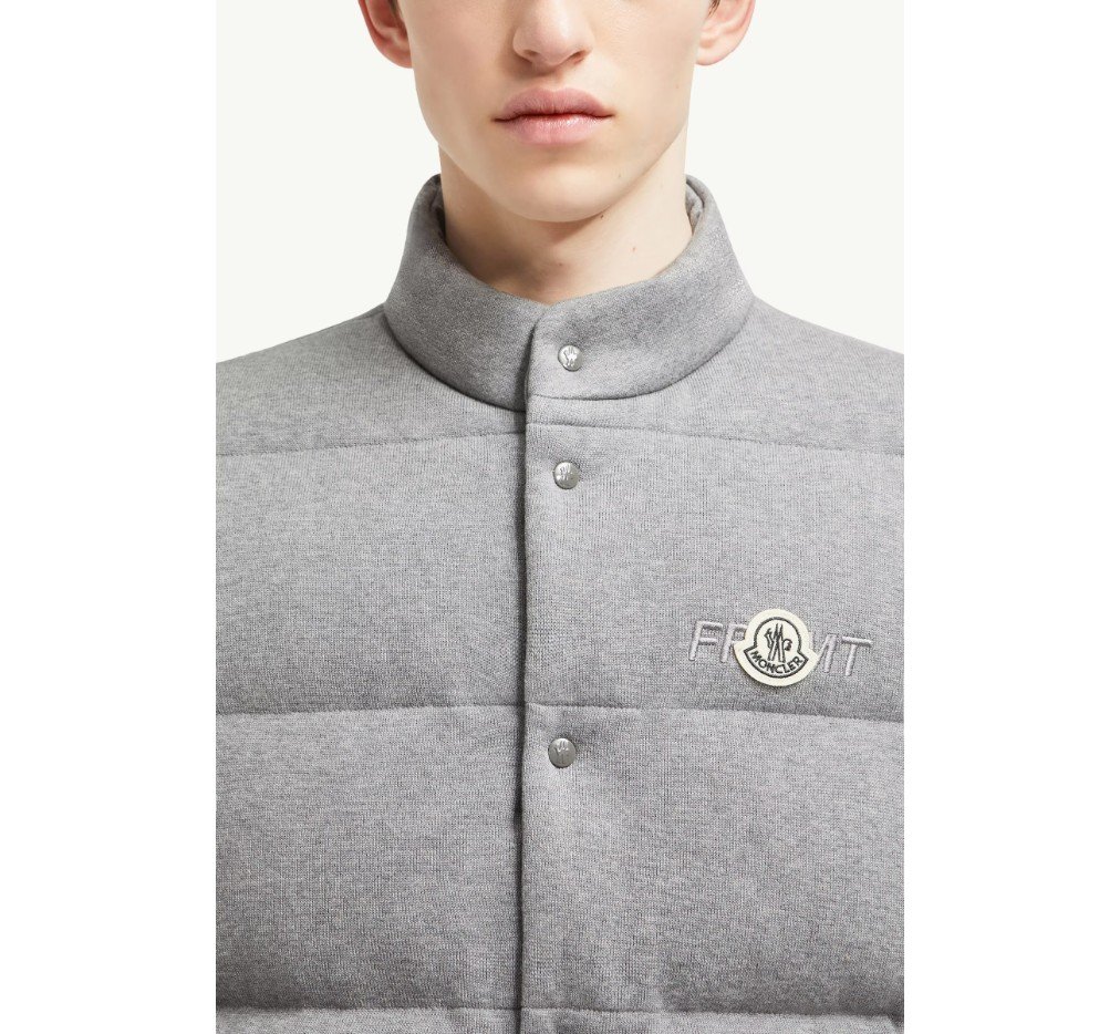 후지와라 히로시와 함께 제작한 이 코튼 퍼퍼 질레는 몽클레르 x FRGMT 디자인 언어를 상징합니다. 코튼 소재로 제작된 가벼운 니트 소재의 이 재킷은 다운 충전재를 사용했으며, 로고 자수로 마감했습니다.