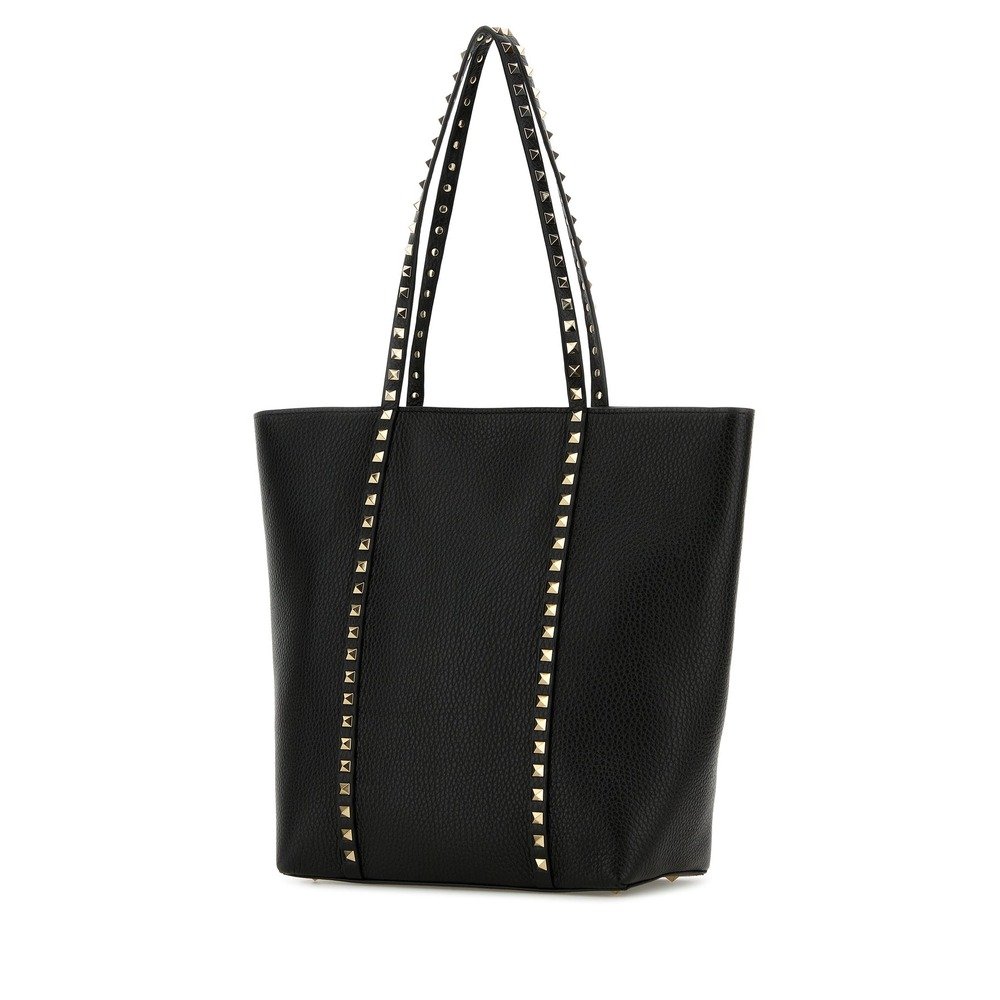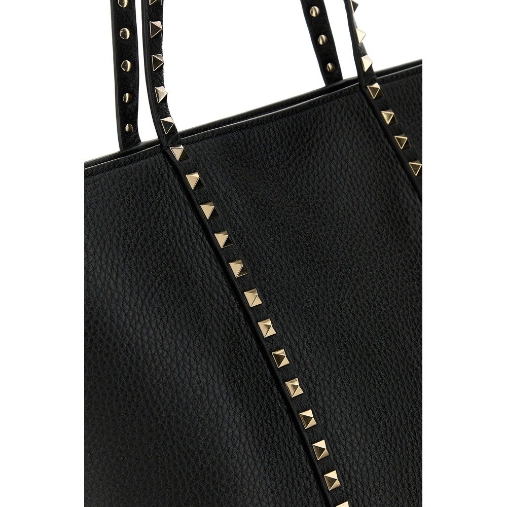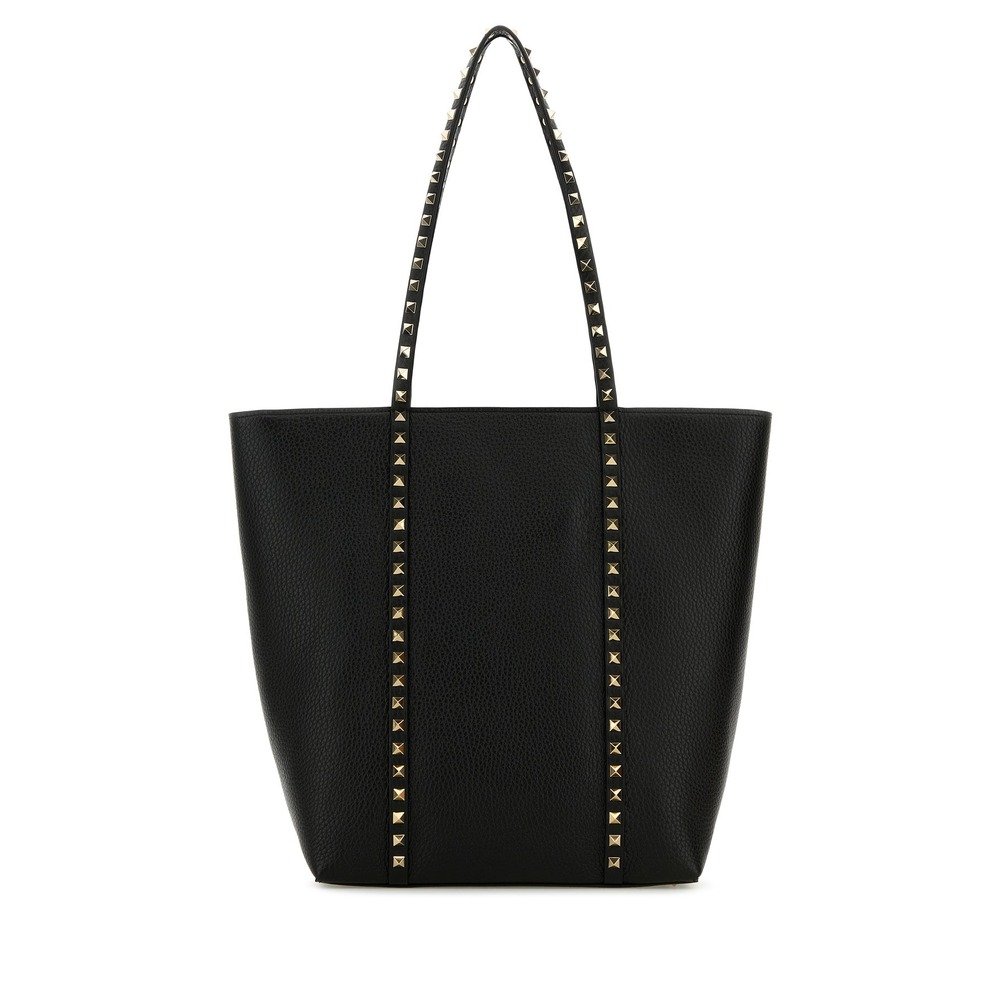 발렌티노 가라바니 블랙 레더 락스터드 쇼핑백 6W2B0Q99VSF 0NO