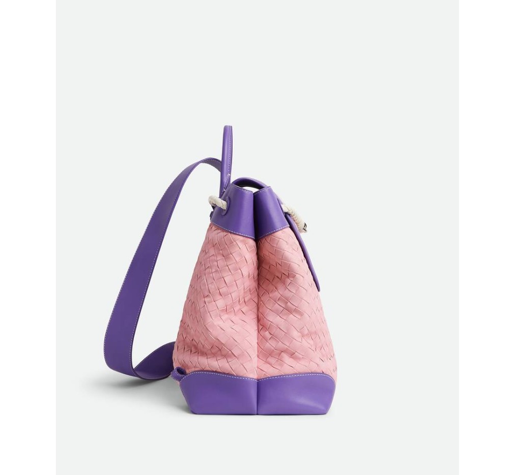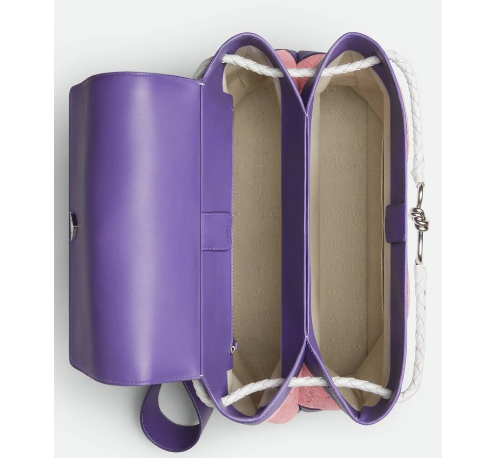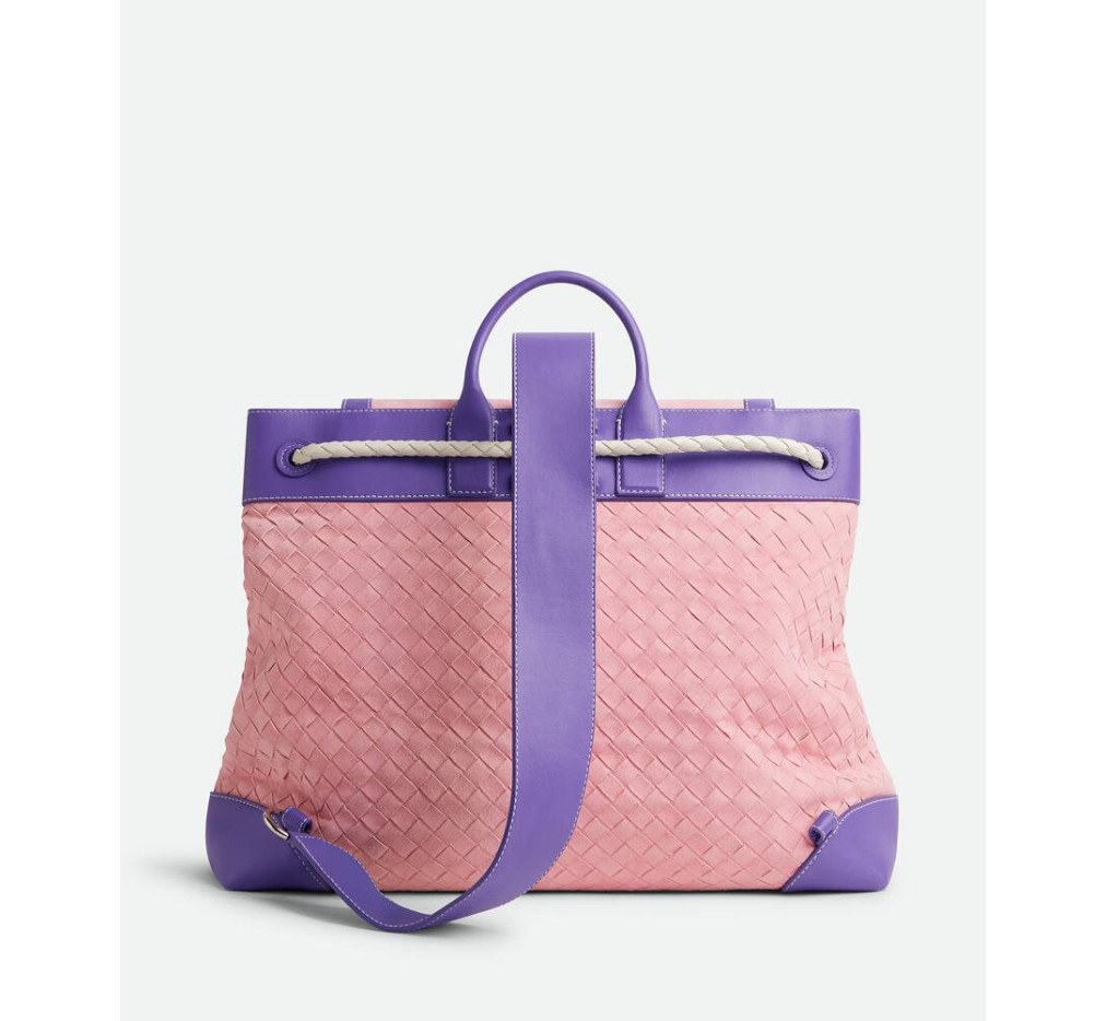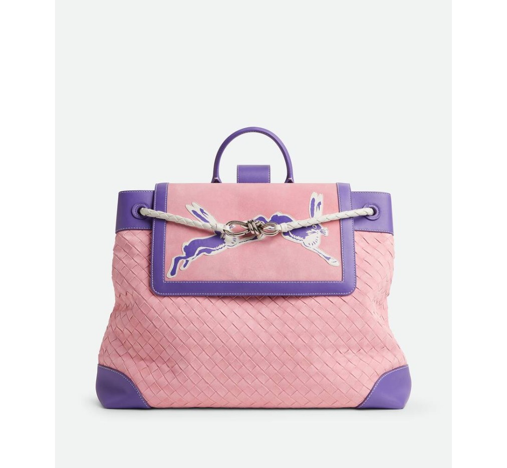 인트레치아토 스웨이드 소재에 가죽 트리밍과 점프하는 토끼 프린트가 돋보이는 백팩입니다. 시그니처 매듭 디테일, 백 스트랩, 탑 핸들이 특징입니다.
