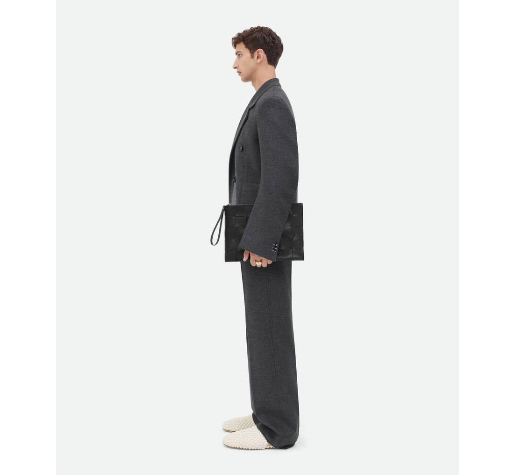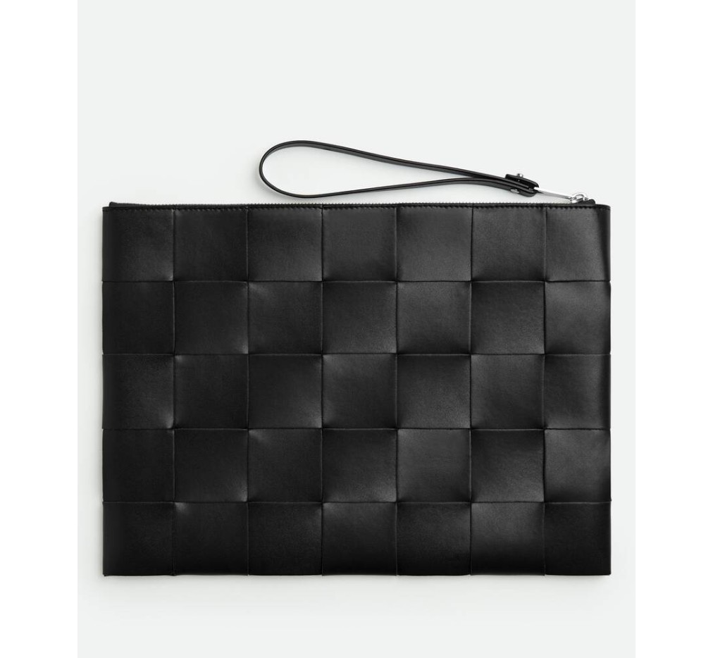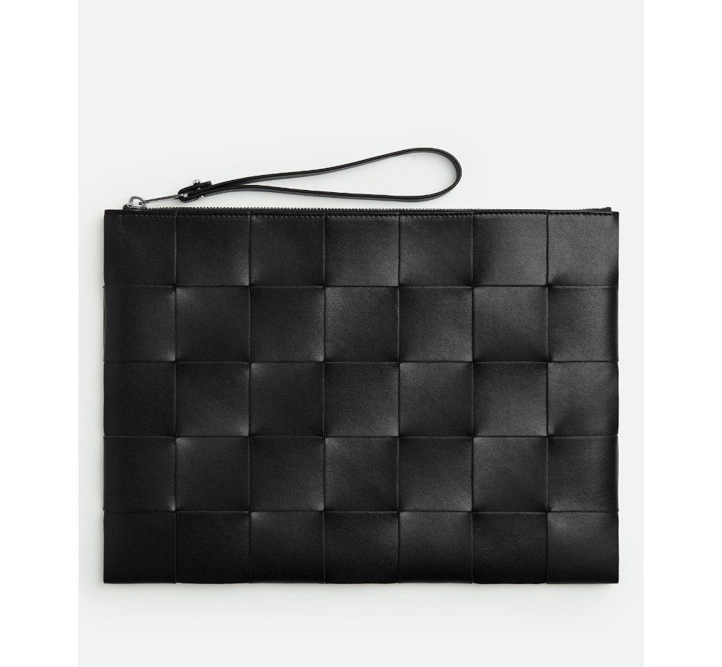 라지 인트레치오 가죽 손목 파우치.
