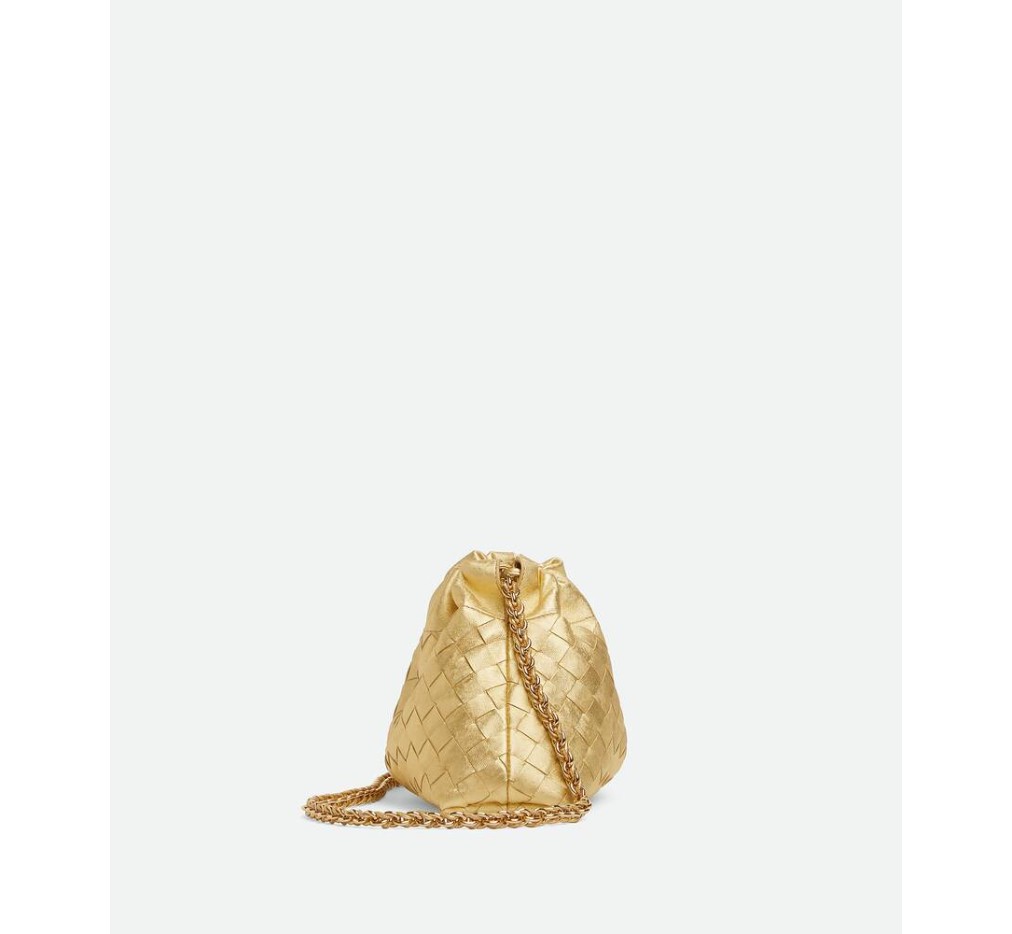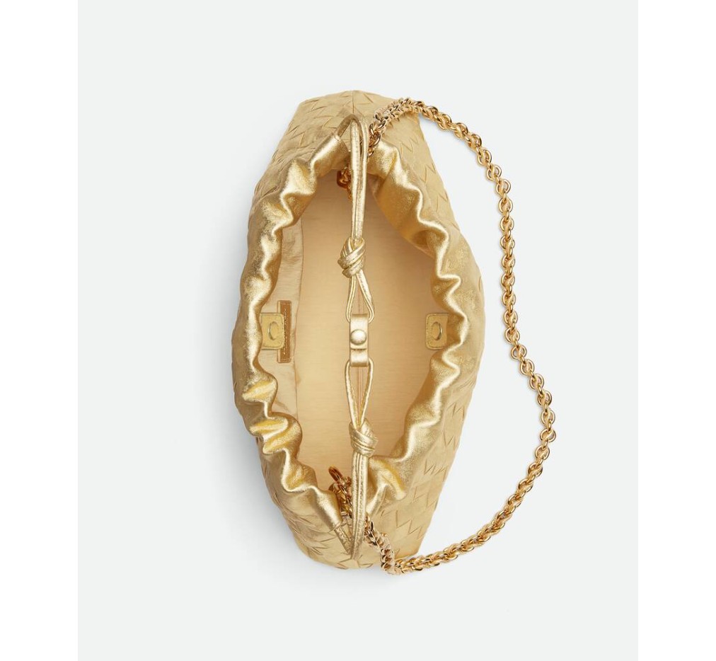 새틴 마감의 인트레치아토 라미네이트 가죽 소재 더스트백과 튜브형 가죽 브레이드 메탈 체인이 특징입니다. 어깨에 메고 다닐 수 있도록 끈으로 여닫는 잠금장치와 고리가 있습니다.