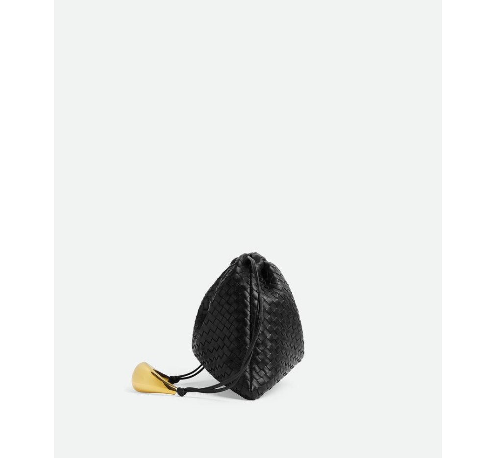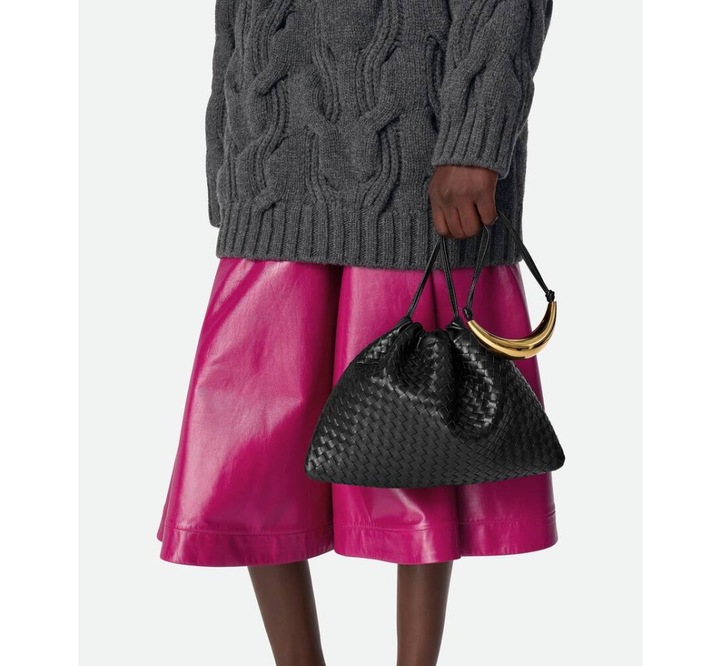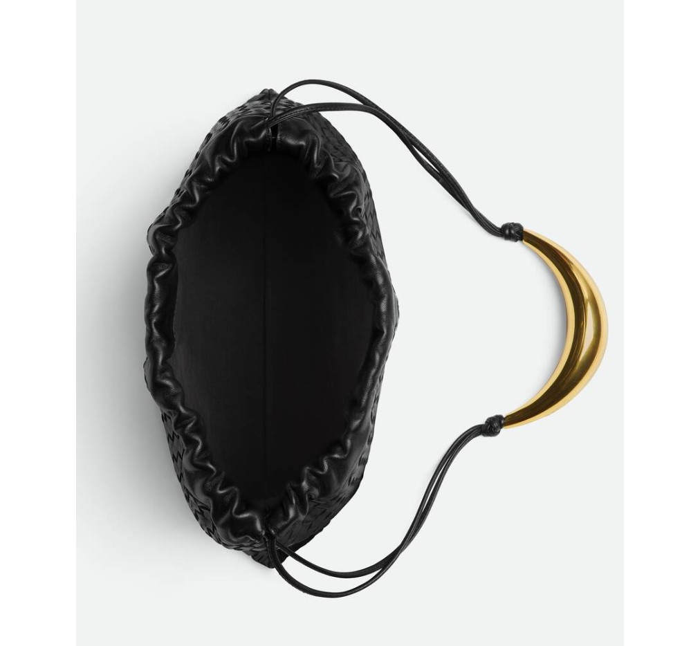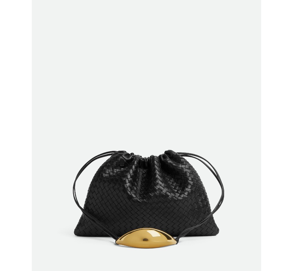 조각품 같은 금속 손잡이가 달린 인트레치아토 피콜로 나파 가죽 소재의 더스트백.– 인트레치아토 피콜로 나파 가죽 파우치