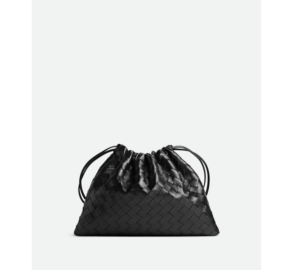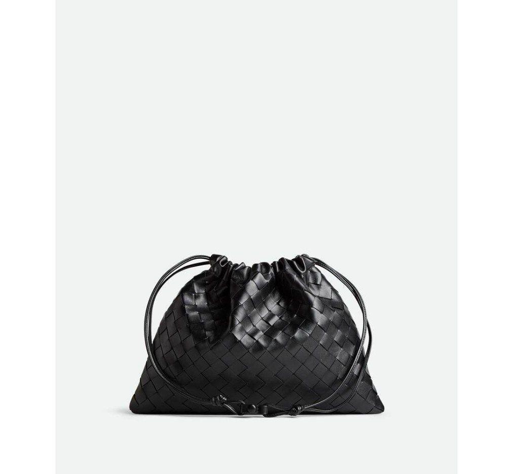 어깨에 메고 다닐 수 있도록 끈으로 여닫을 수 있는 고리와 루프가 달린 인트레치아토 송아지 가죽 소재의 더스트백입니다.– 인트레치아토 송아지 가죽 파우치