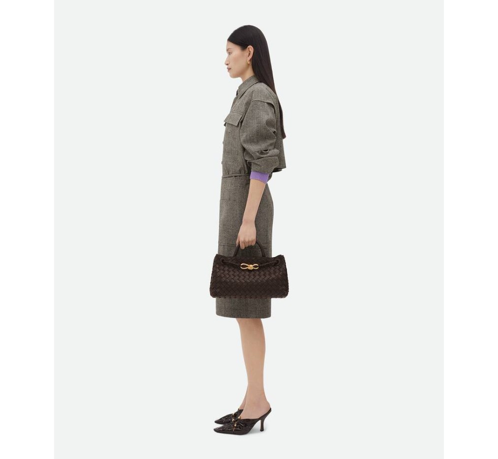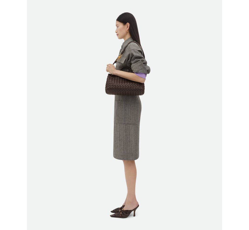 부드러운 인트레치아토 가죽으로 길쭉한 실루엣을 자랑하는 탑 핸들 백. 시그니처 매듭 디테일과 슬라이딩 크로스바디 스트랩이 특징입니다.이 가방은 공예 인증서에 적합합니다.