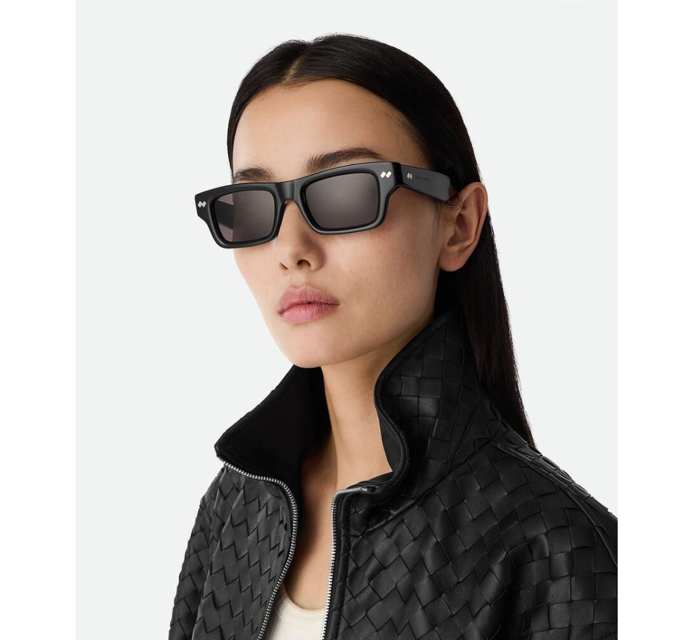 인트레치아토 직조를 연상시키는 골드 마감 디테일이 들어간 재활용 아세테이트 소재의 사각형 선글라스.– 재활용 소재 27%를 함유한 아세테이트 소재 EASTMAN ACETATE RENEW의 스퀘어 선글라스