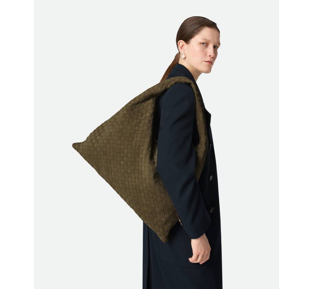 부드러운 스웨이드 소재의 인트레치아토 장인정신이 돋보이는 숄더백.– 라지 INTRECCIATO 스웨이드 숄더백