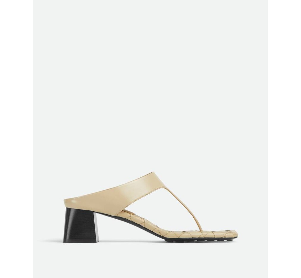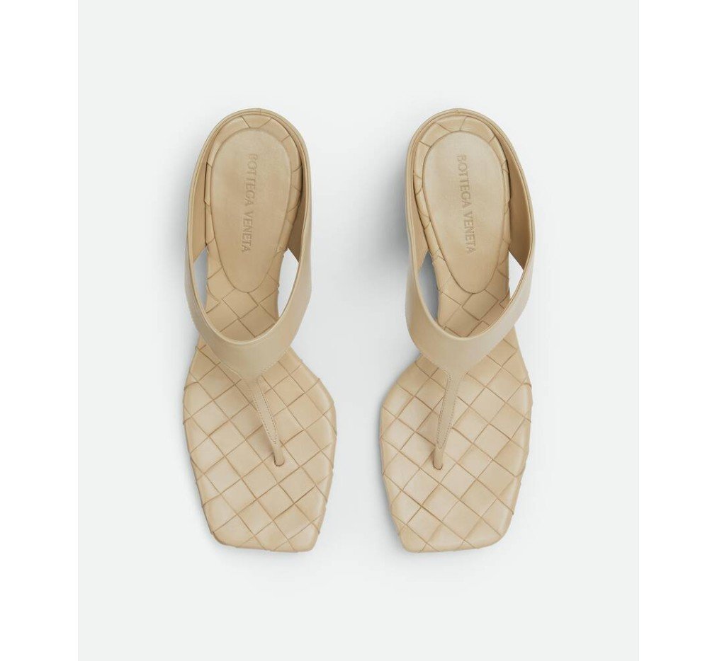 – 인트레치아토 깔창이 달린 가죽 키튼힐 끈 샌들