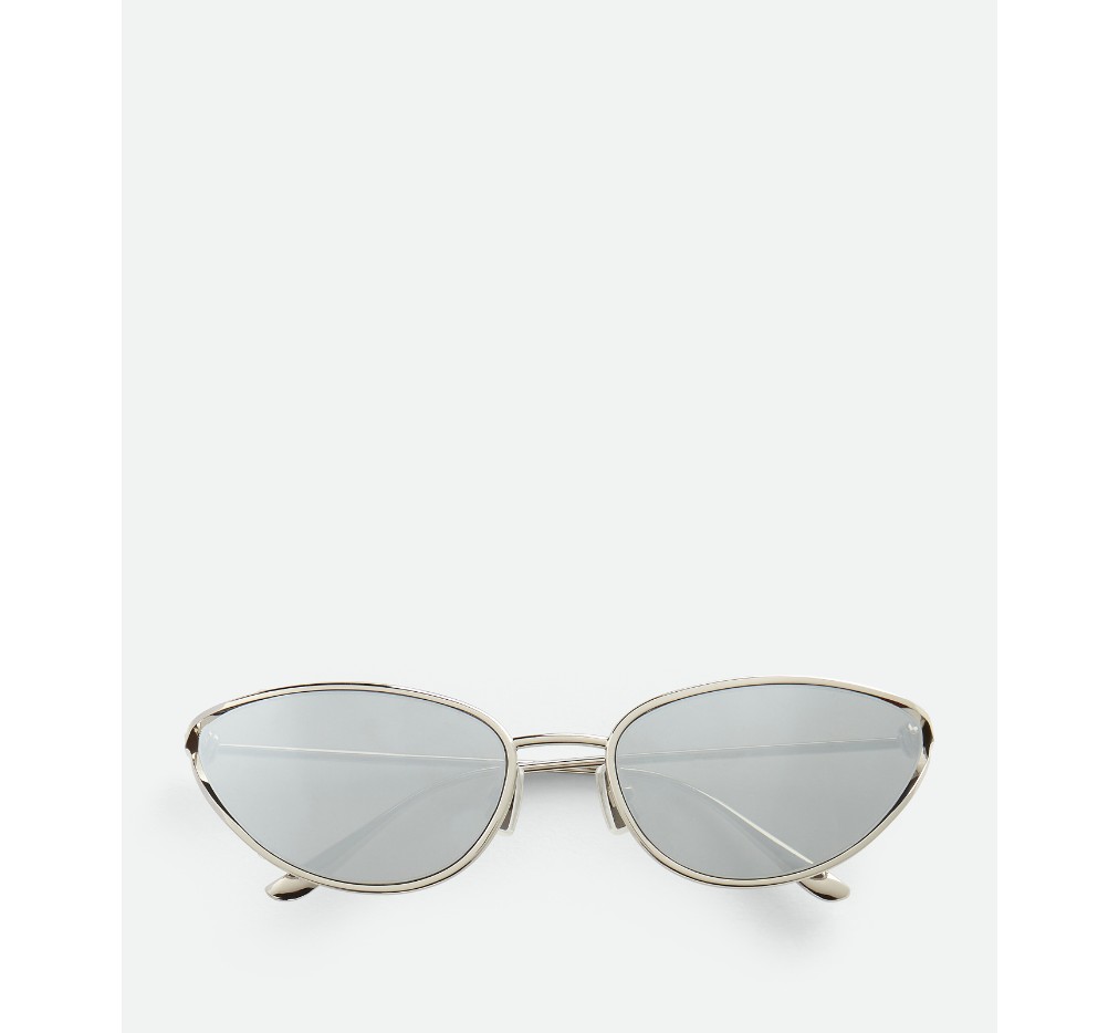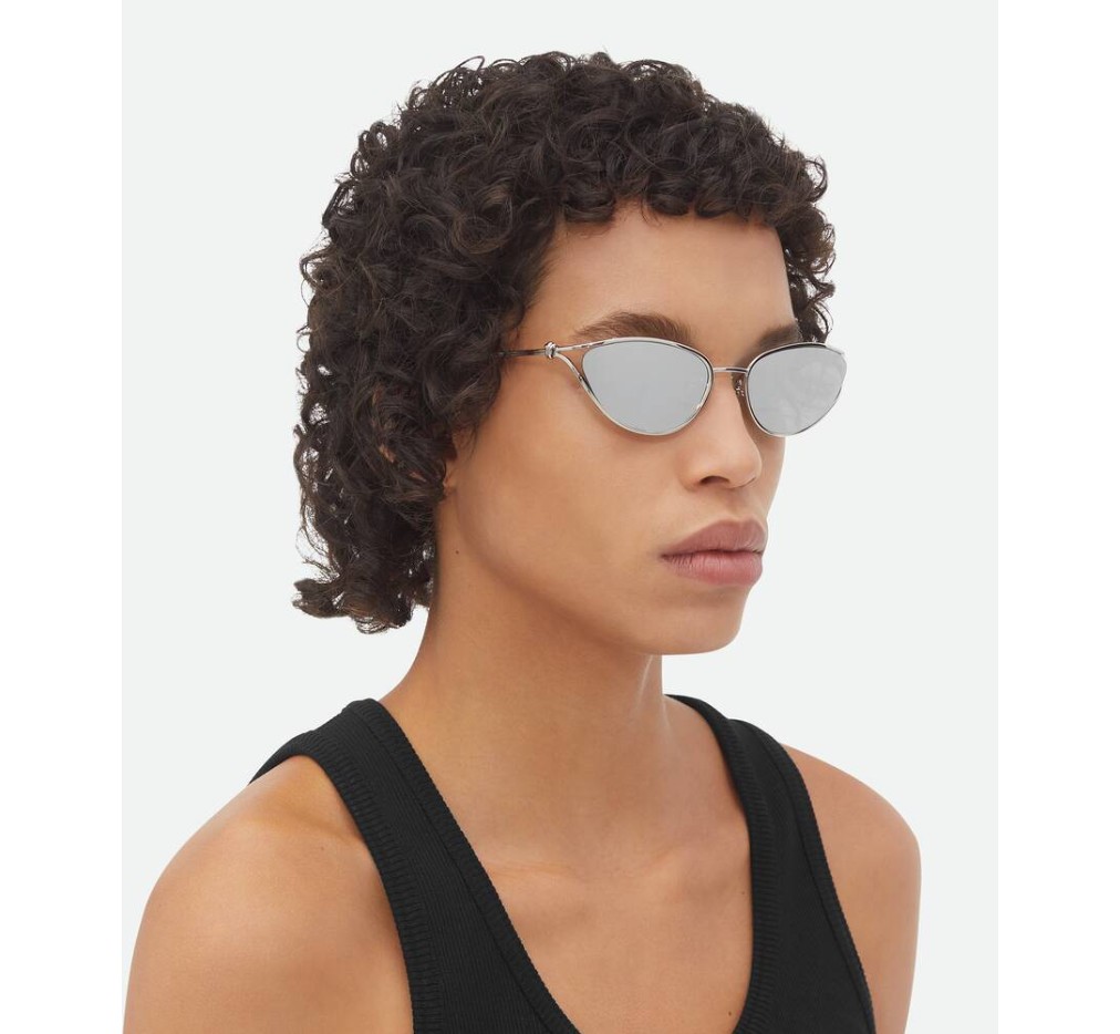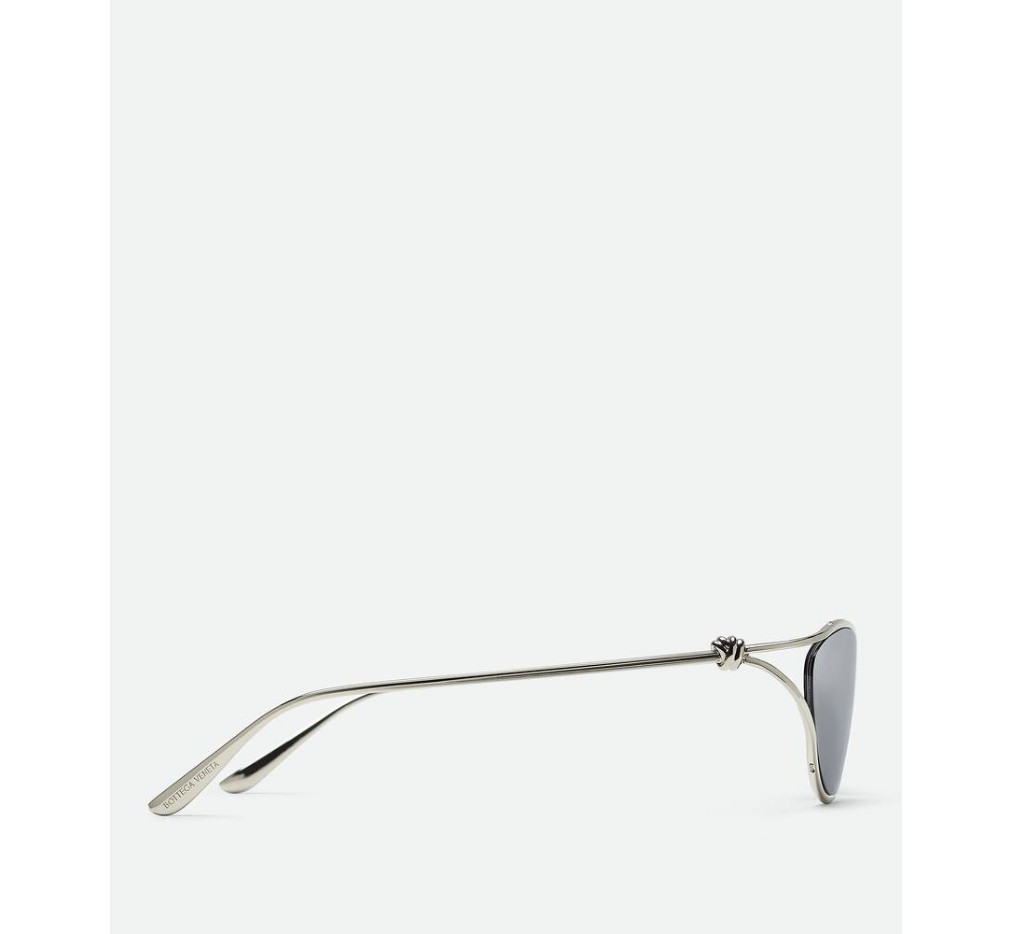 템플에 매듭 디테일이 들어간 메탈 소재의 캣아이 선글라스. 일본에서 제작.