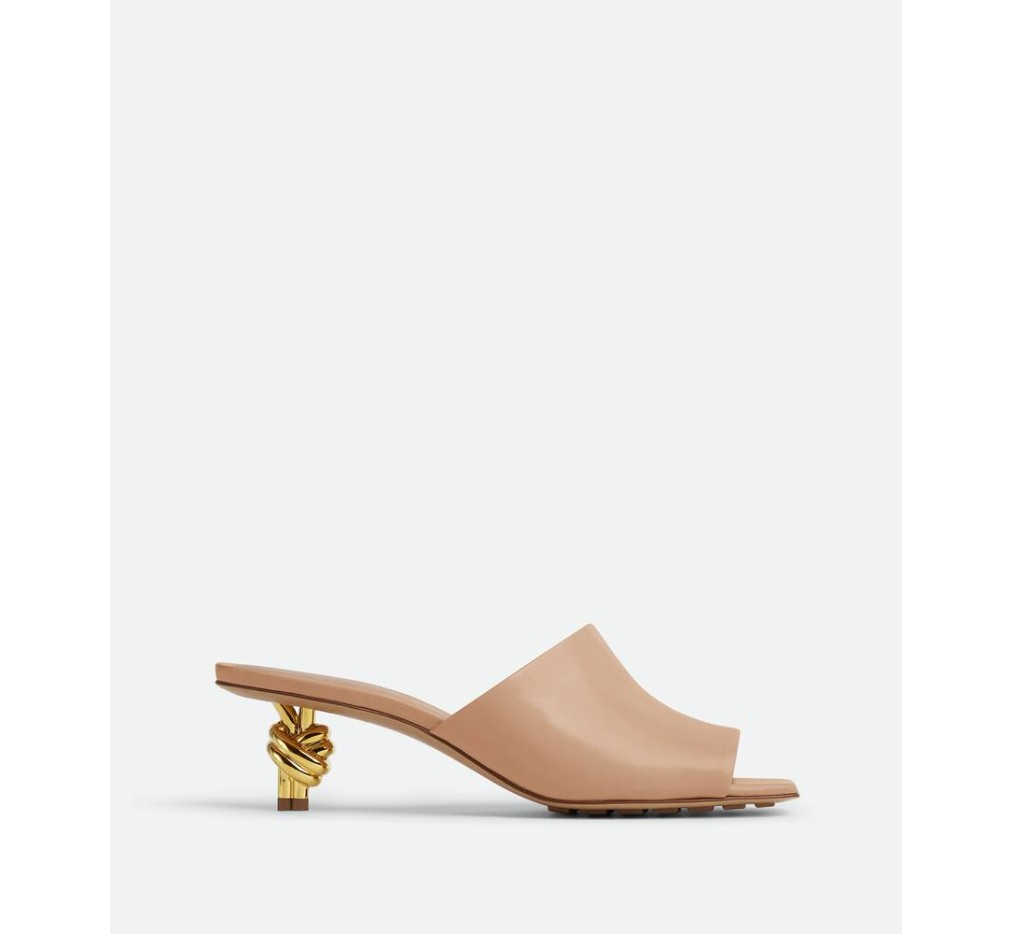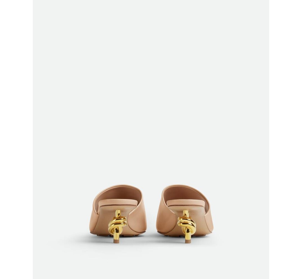 골드 마감 메탈 매듭 힐이 돋보이는 뮬. 부드러운 양가죽 소재로 제작되었습니다.