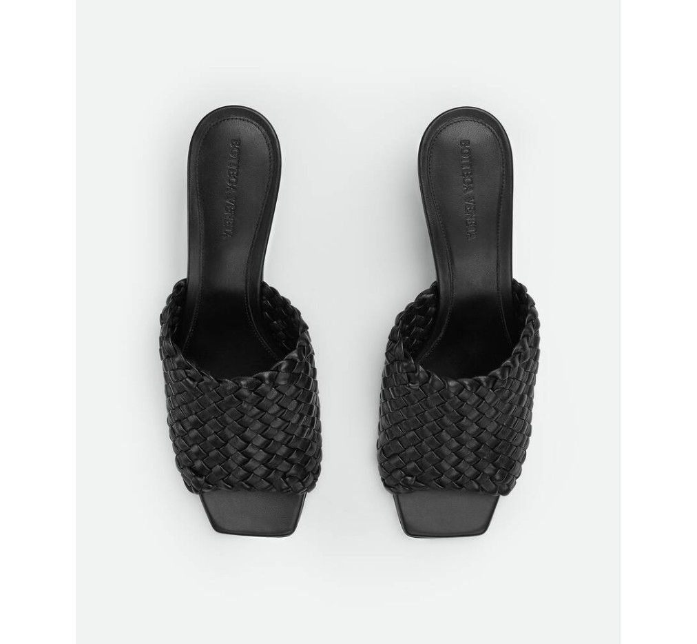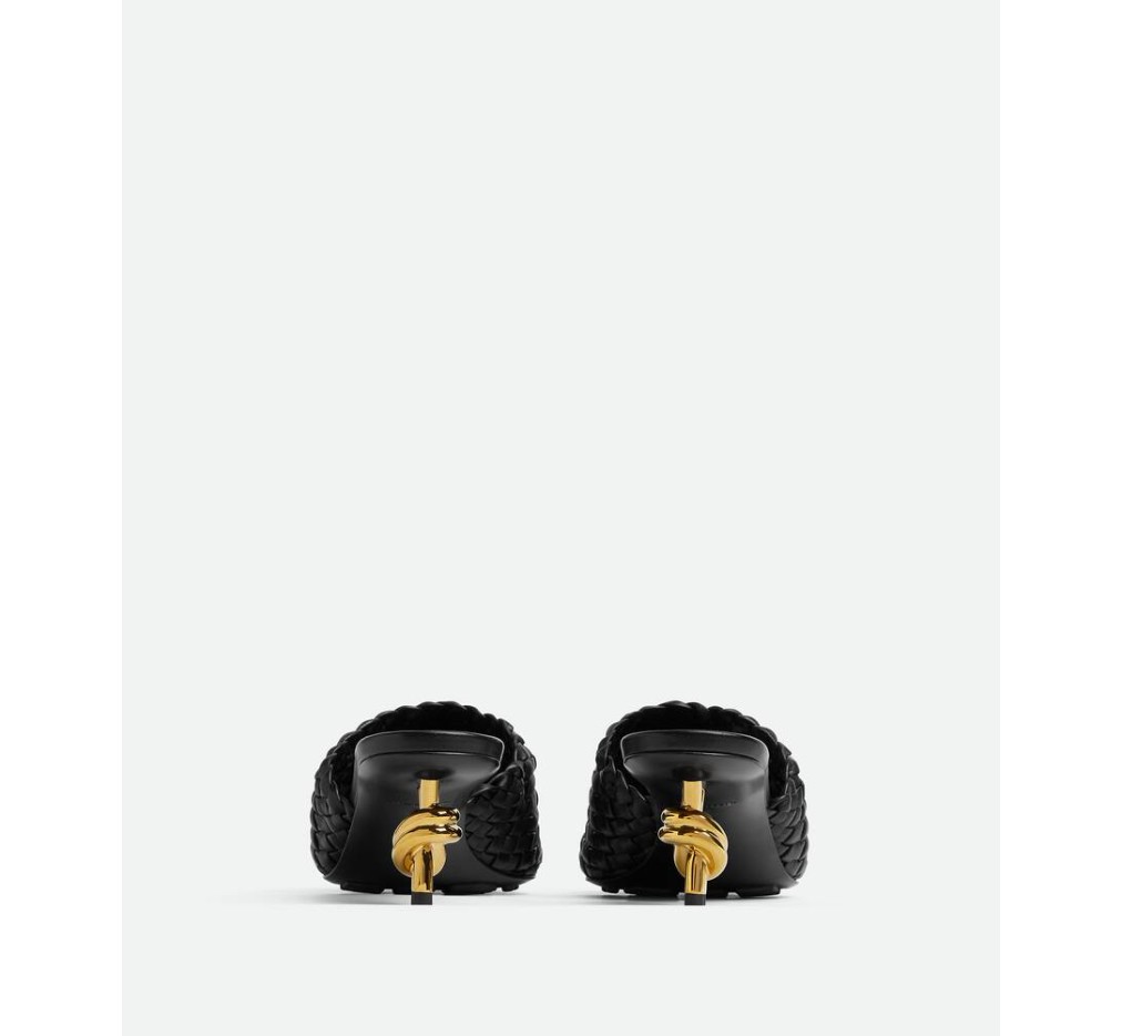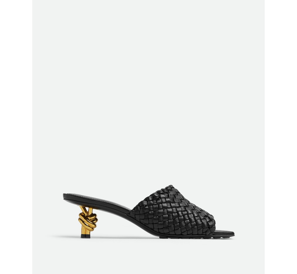 시그니처 메탈 매듭 힐이 달린 인트레치오 양가죽 뮬.– 인트레치오 레더 뮬