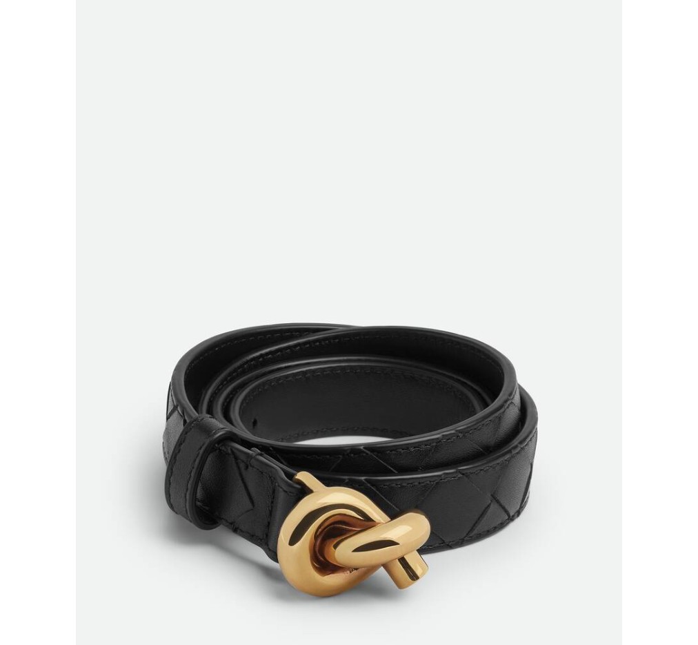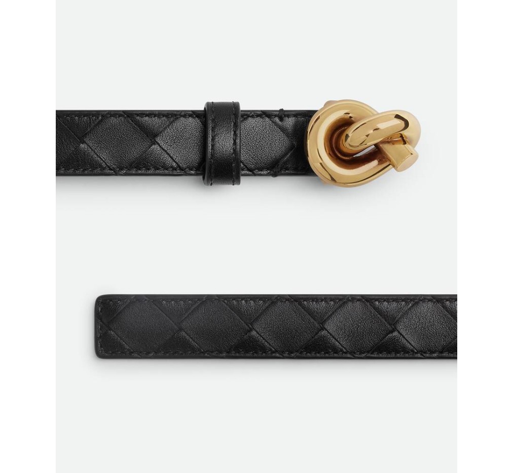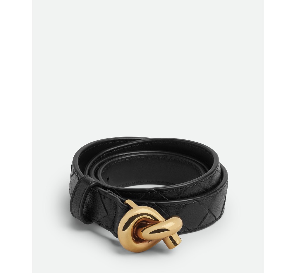 시그니처 매듭 버클이 달린 인트레치아토 실크 송아지 가죽 벨트.– 인트레치아토 송아지 가죽 벨트