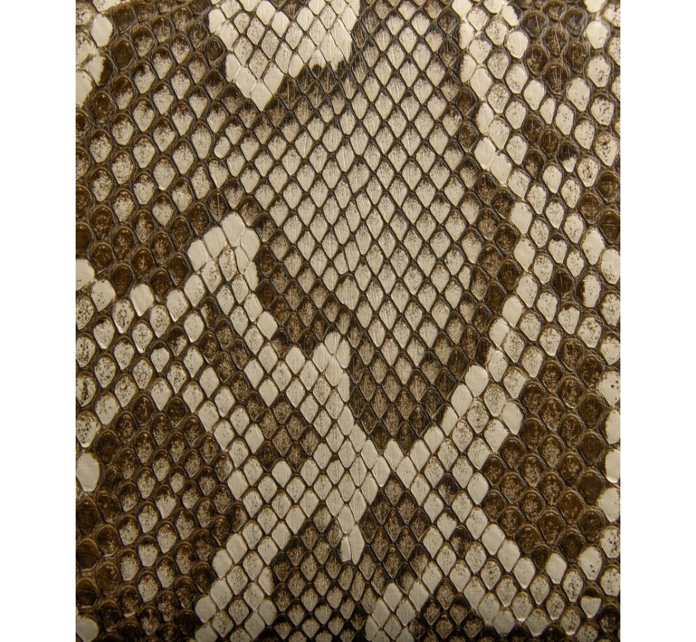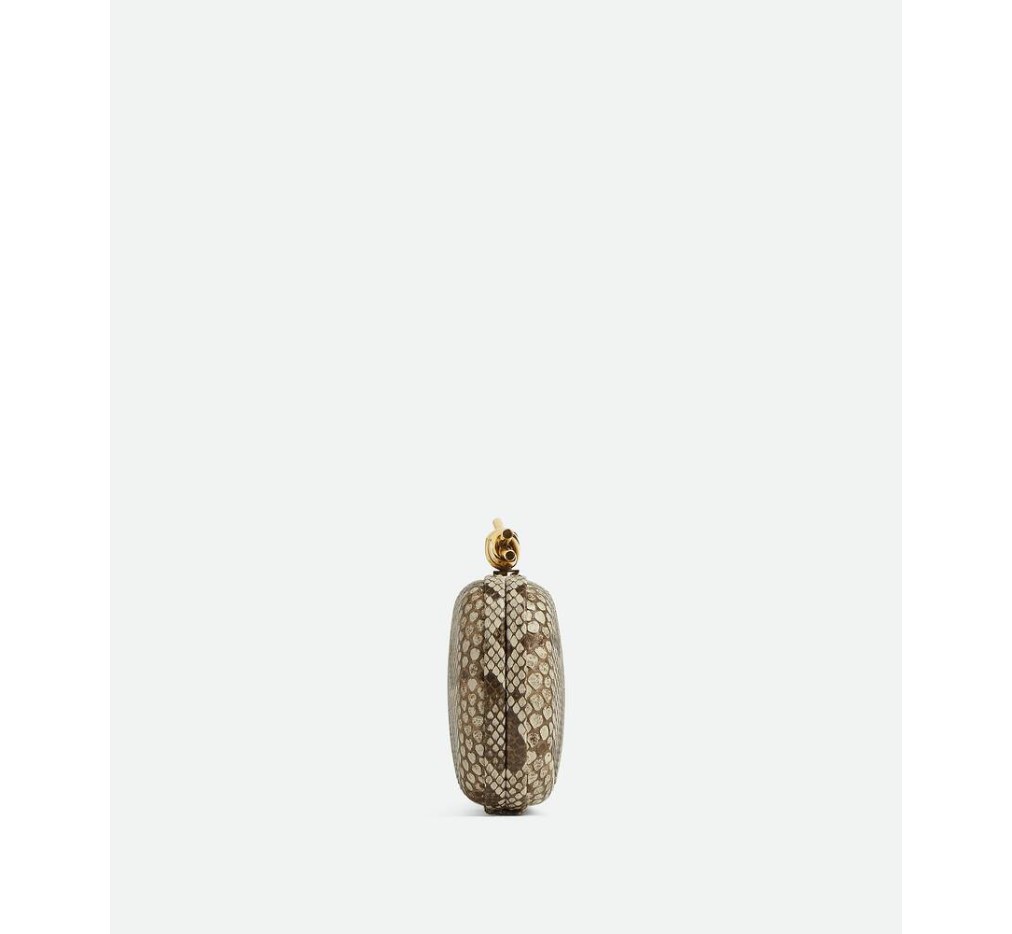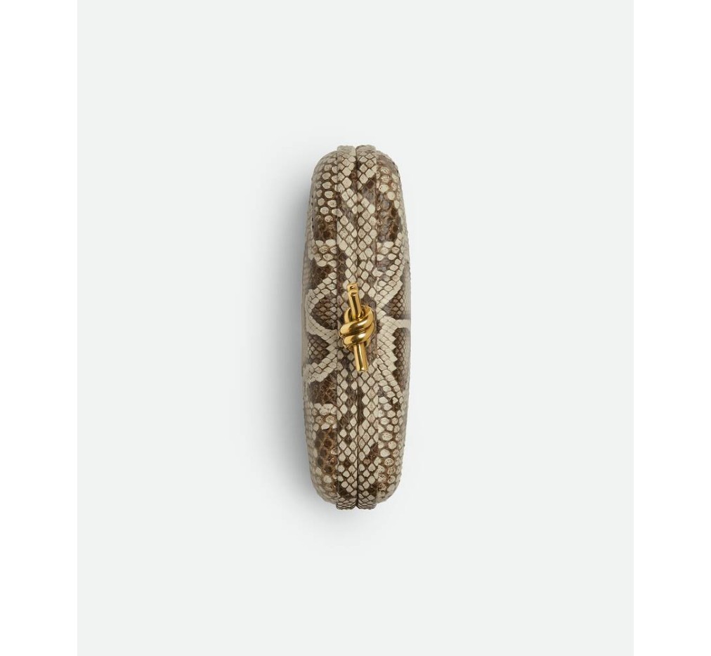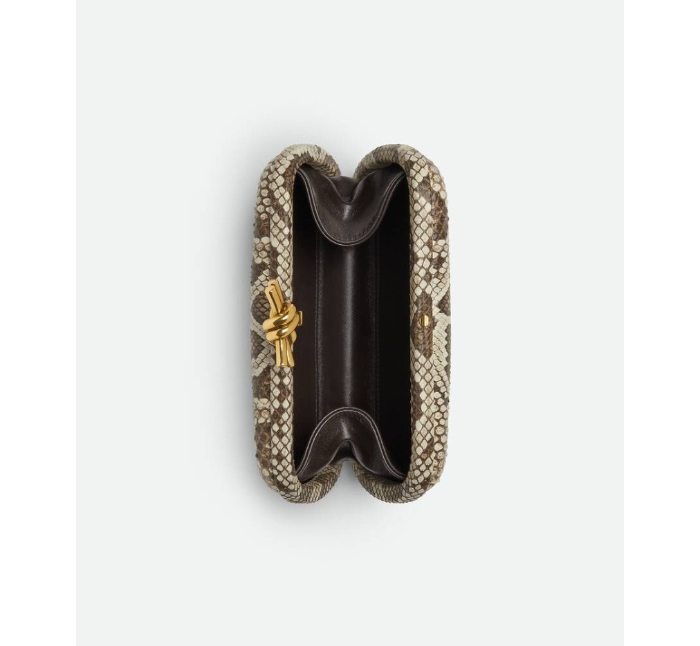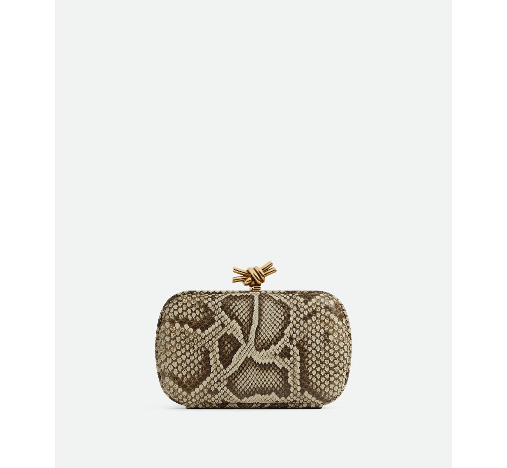 시그니처 매듭 잠금 장치가 달린 파이썬 가죽 미노디에르 클러치.
