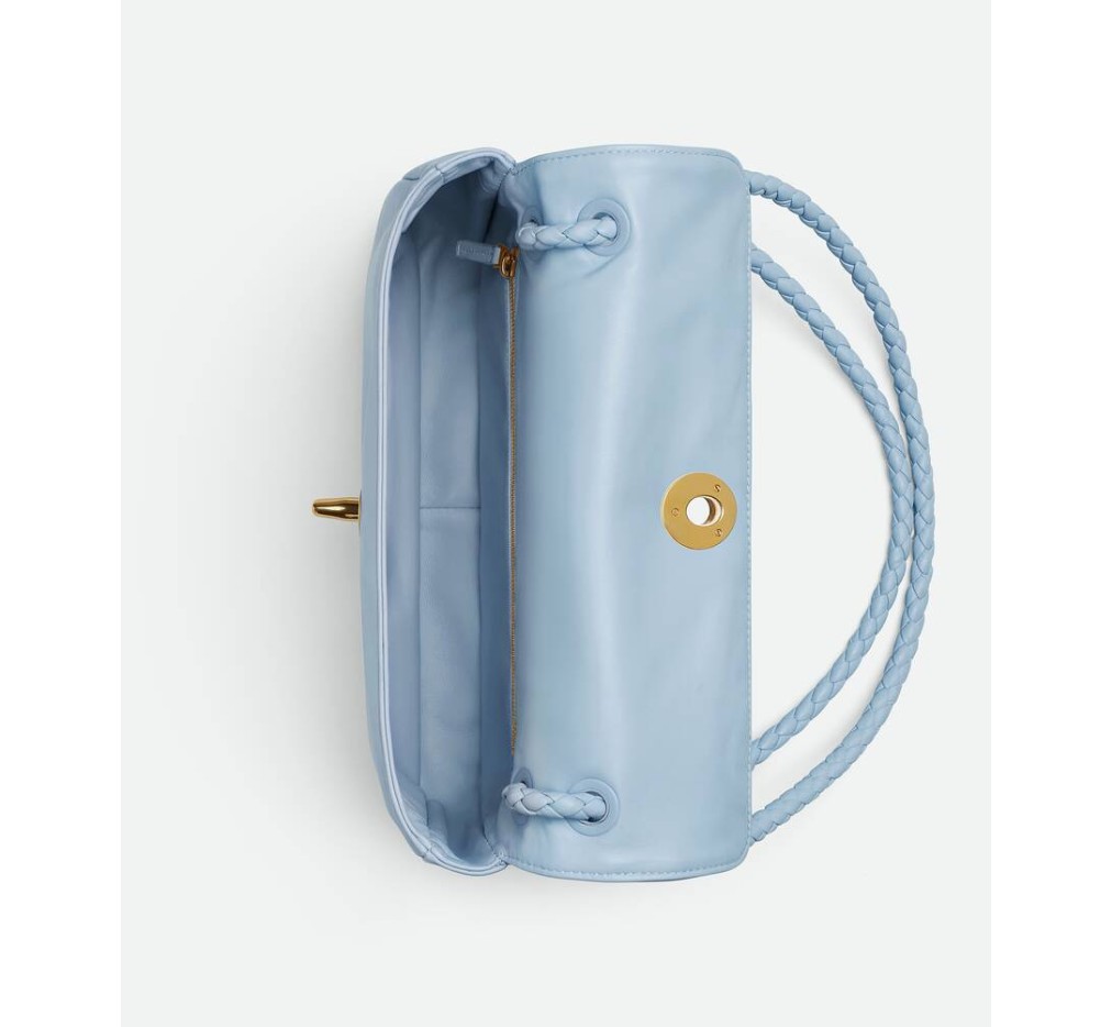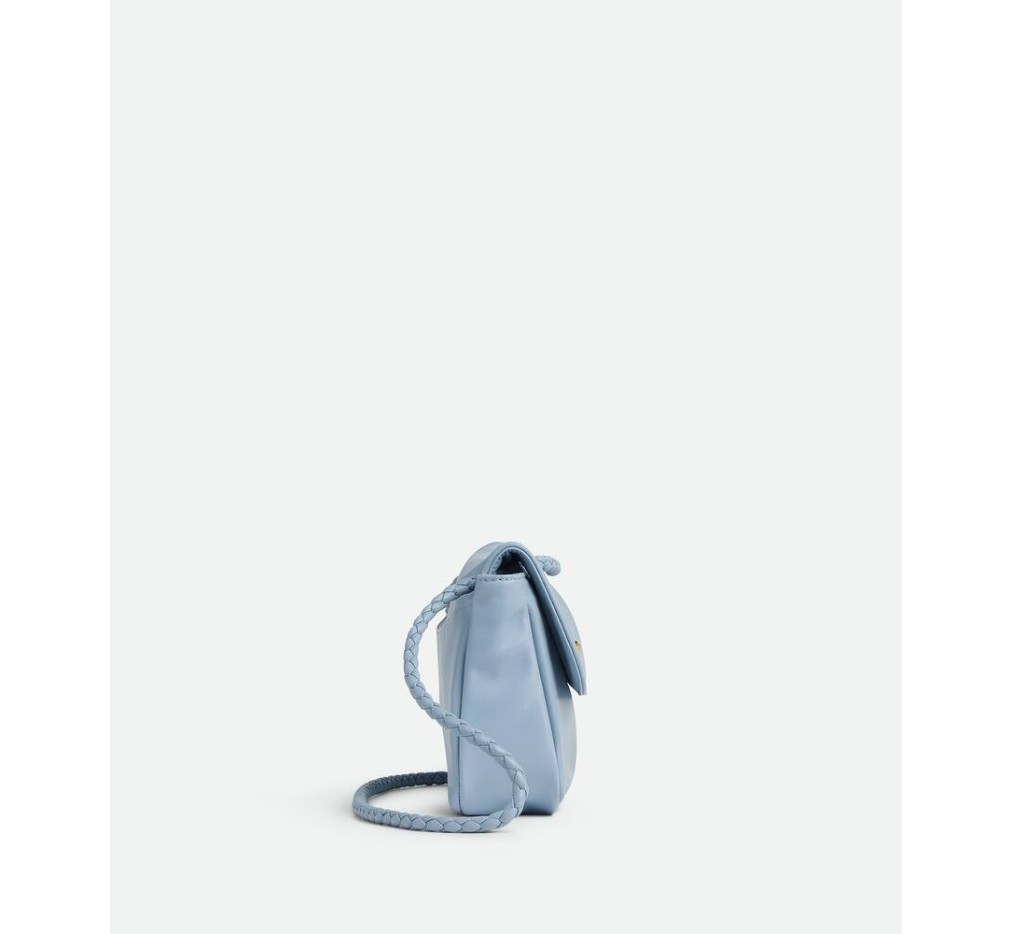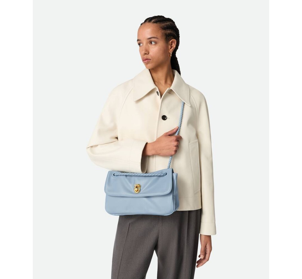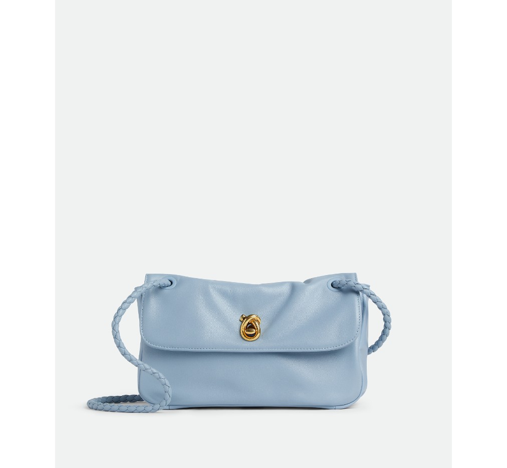 유연한 양가죽 소재의 숄더백으로, 유연한 메모리 플랩, 조각품 같은 매듭 잠금 장치, 슬라이딩 크로스바디 스트랩이 특징입니다.