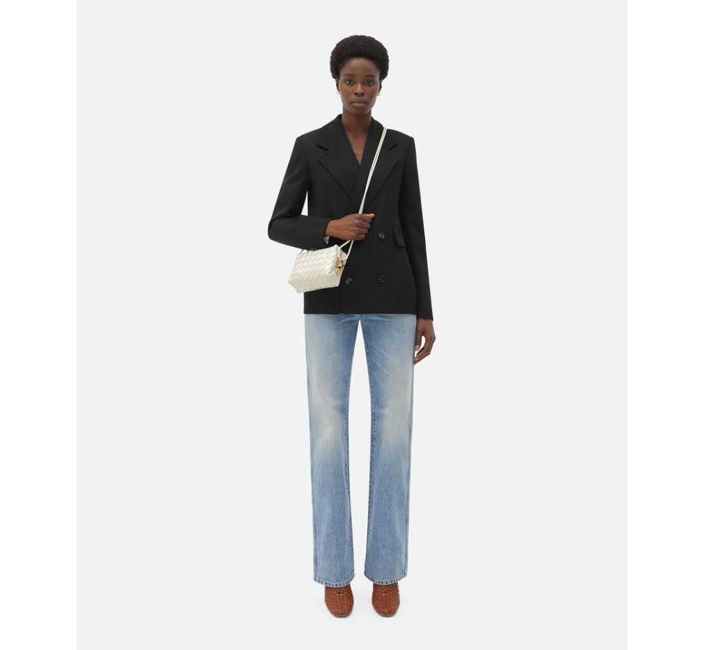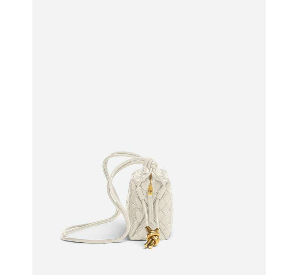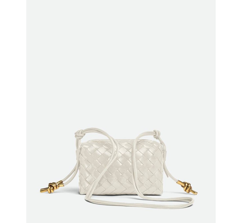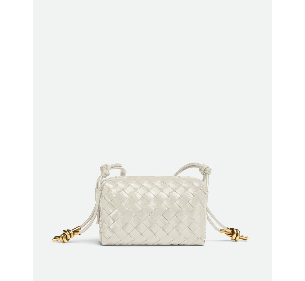시그니처 메탈릭 매듭 디테일이 돋보이는 인트레치아토 가죽 크로스바디 백.