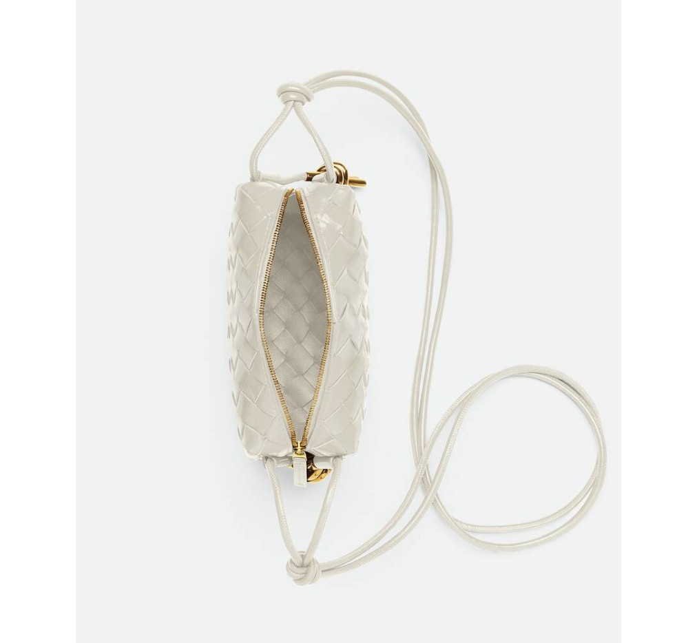 – 메탈 매듭 장식이 있는 미니 인트레치아토 가죽 크로스백
