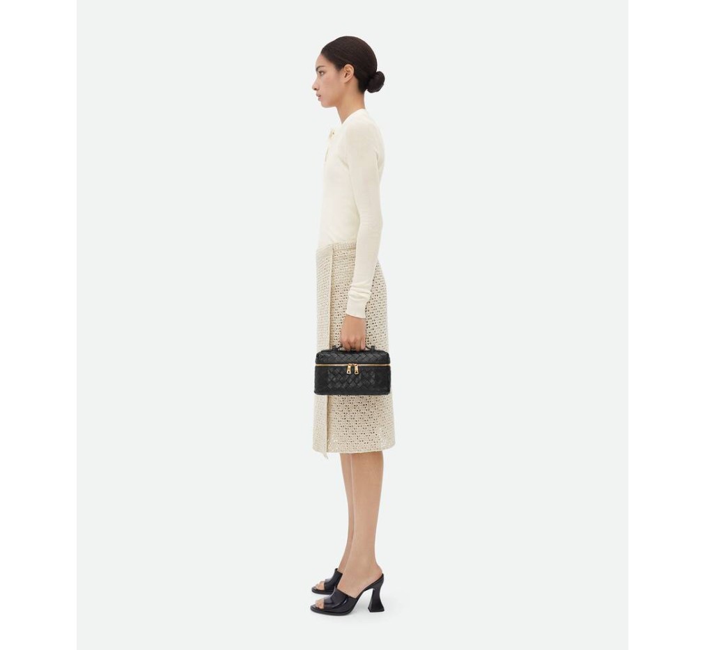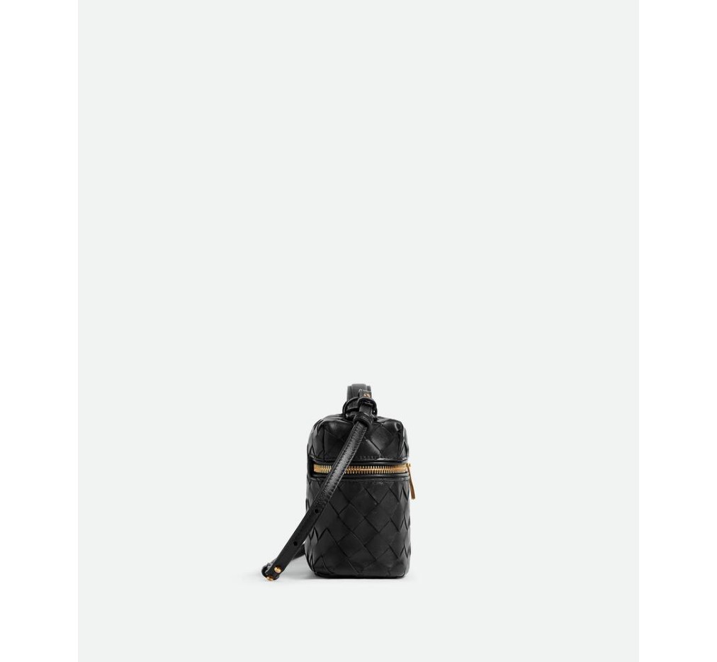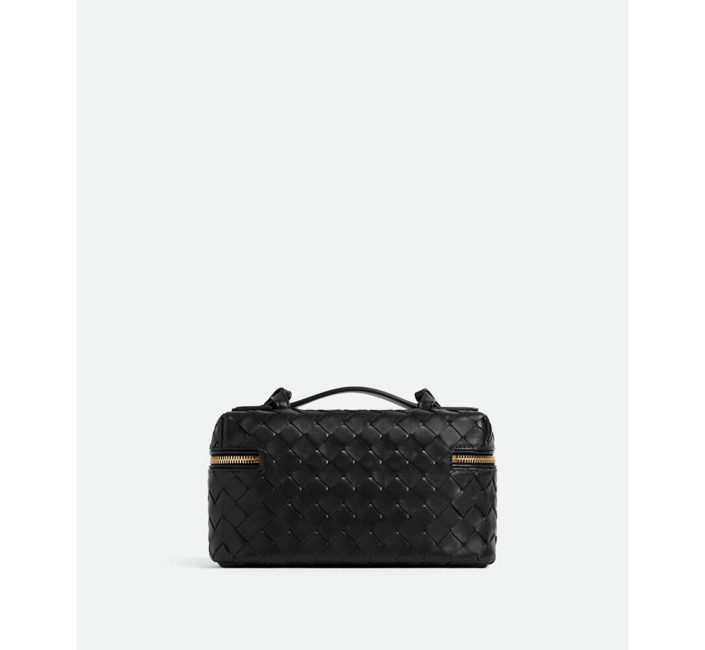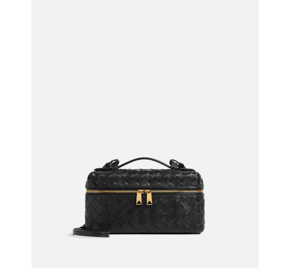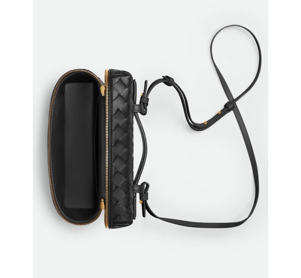 탈부착 가능한 스트랩이 달린 인트레치아토 가죽 화장품 케이스.– 탈부착 가능한 스트랩이 있는 인트레치아토 가죽 화장품 케이스