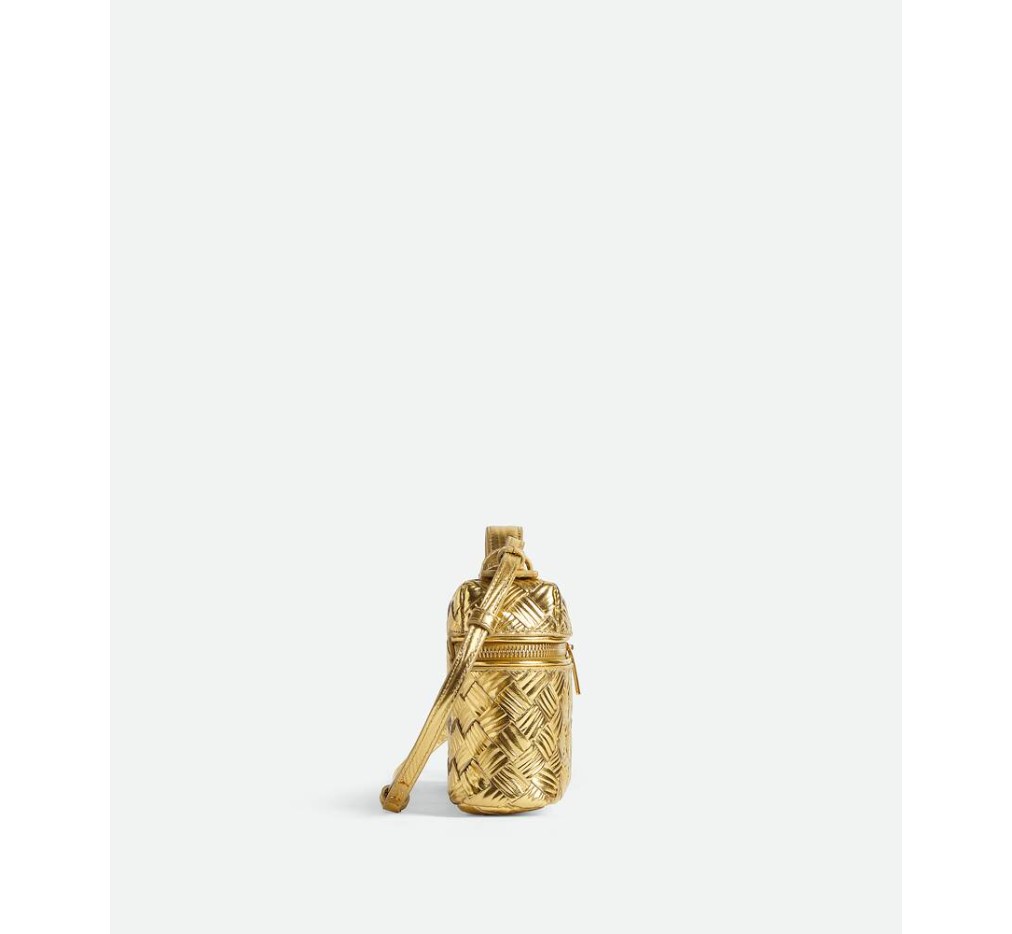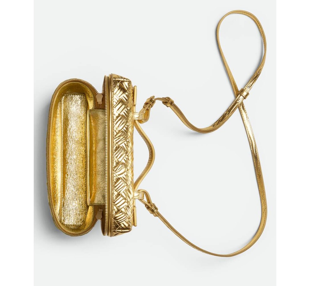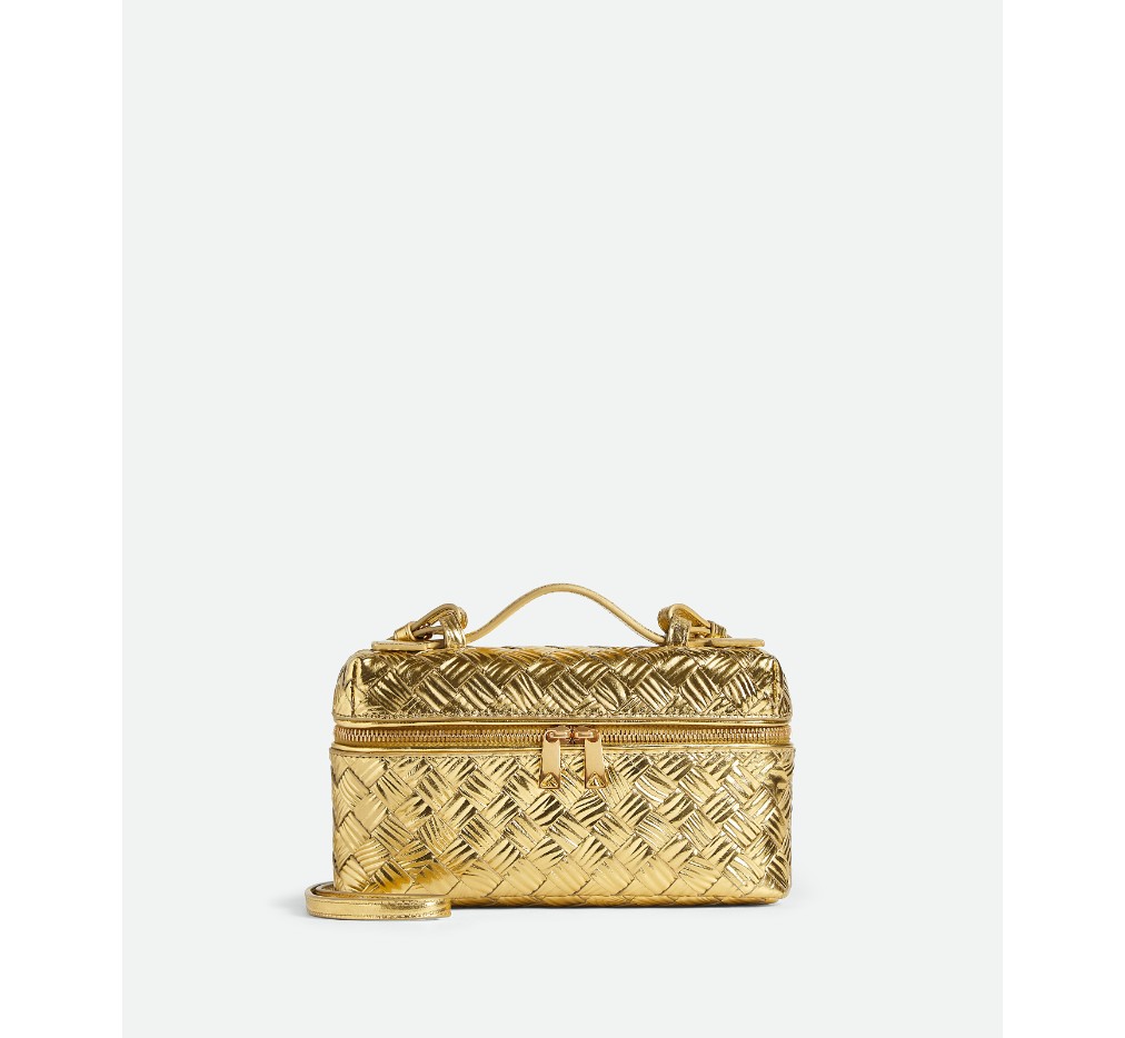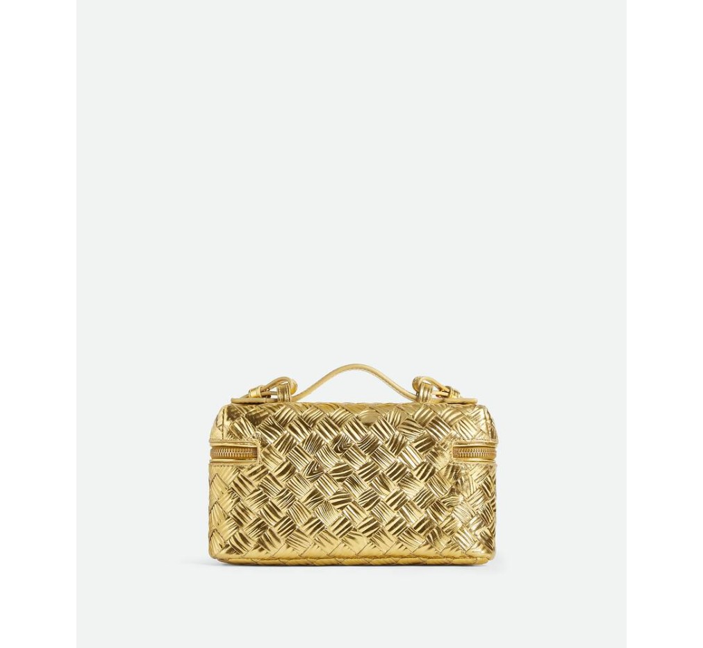 – 분리형 스트랩이 달린 인트레치아토 목재 엠보싱 라미나 가죽 화장대 케이스
