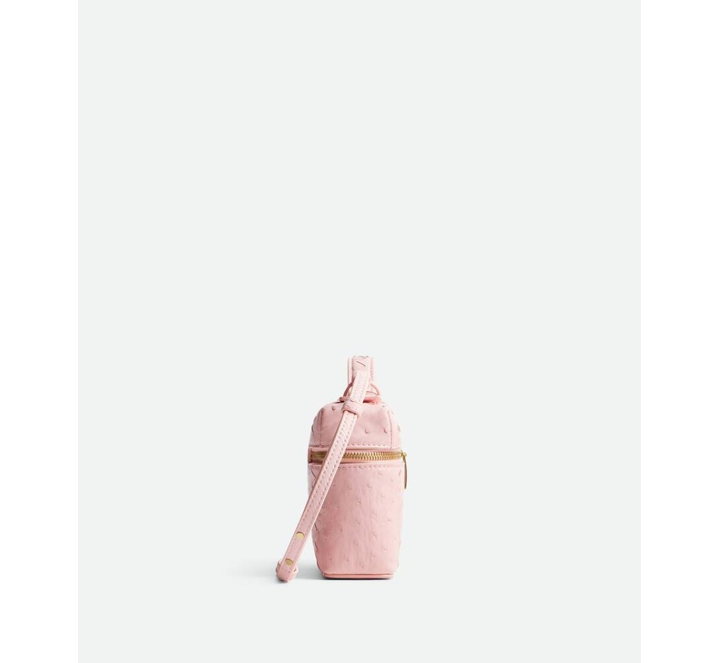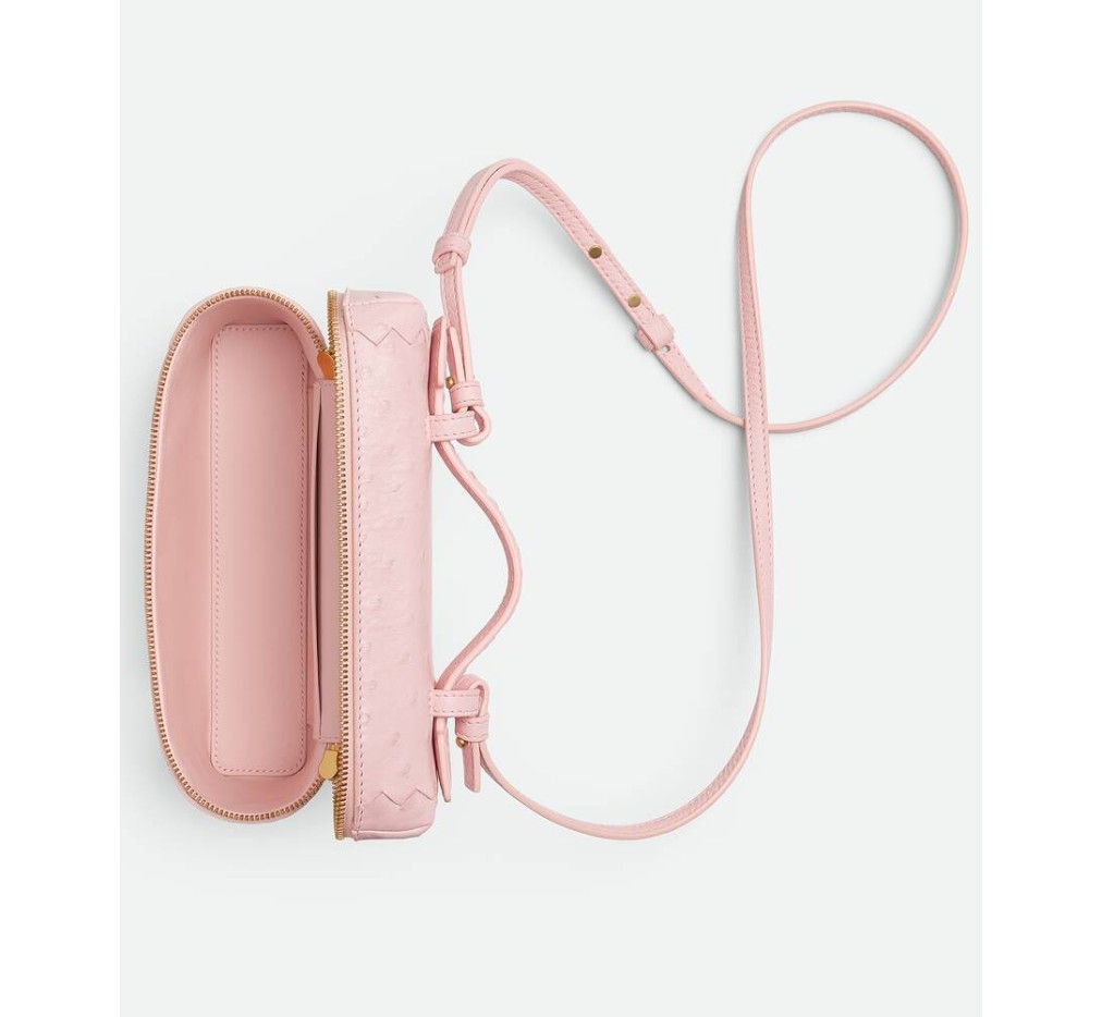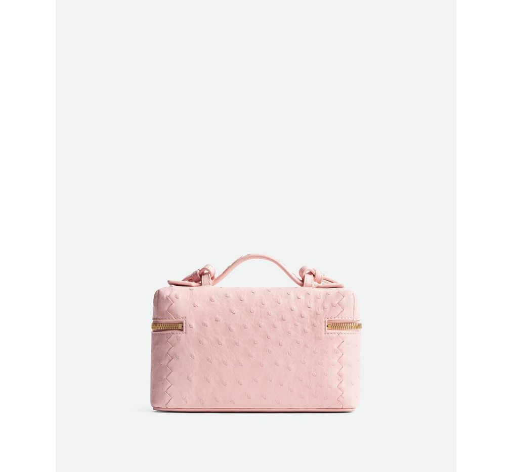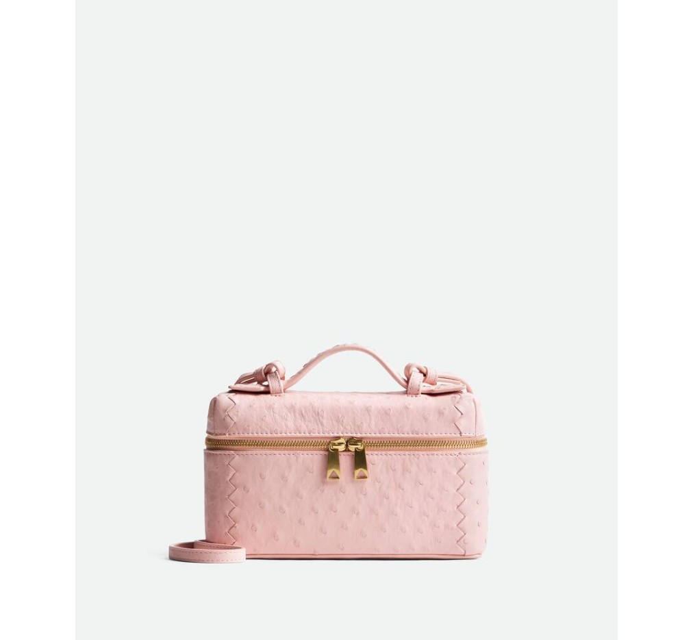 오스트리치 유약 마감과 분리형 스트랩이 있는 가죽 화장대 케이스.– 탈부착 가능한 스트랩이 있는 유약 오스트리치 가죽 화장대 케이스