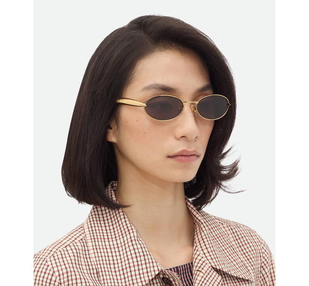 조각적인 사르딘 모양의 템플이 있는 금속 타원형 선글라스.– 조각적인 사르딘 모양의 사원