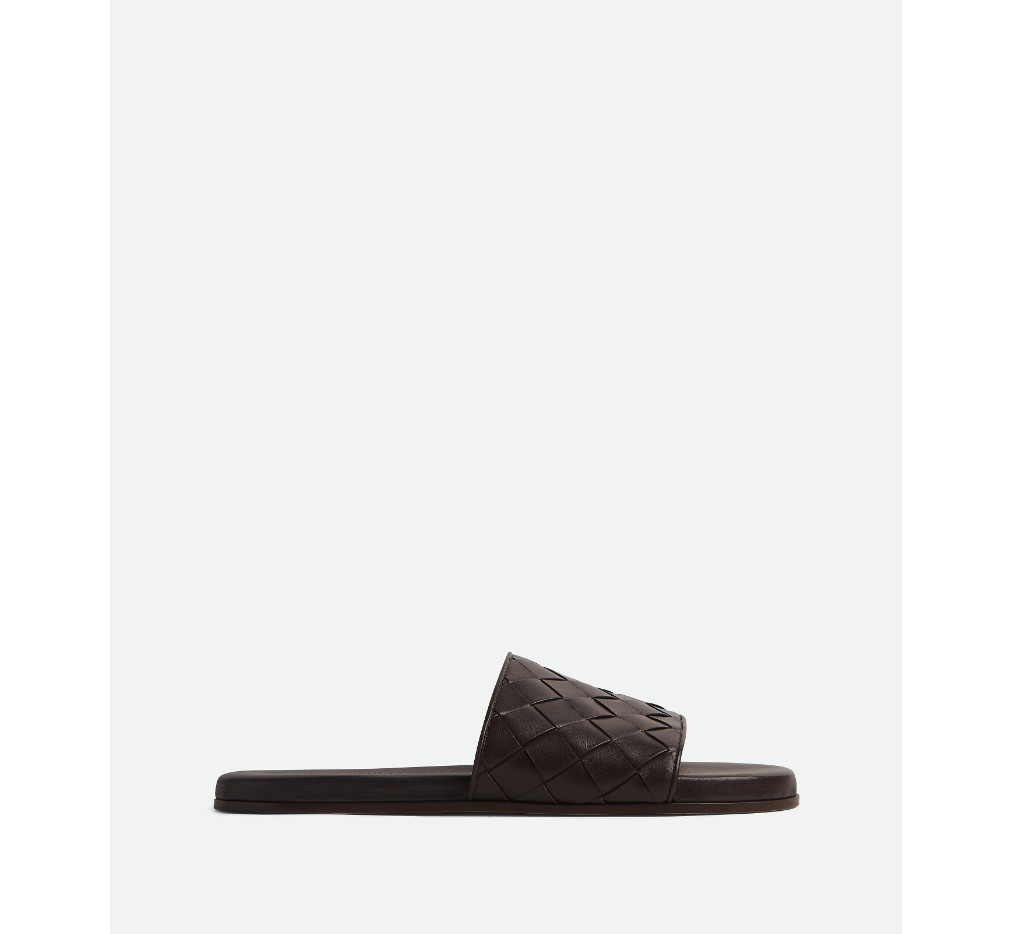 부드러운 양가죽으로 제작한 뮬 샌들로, 전면 패딩 처리된 인트레치아토 기법이 돋보입니다.– 패딩 인트레치아토 가죽 뮬 샌들