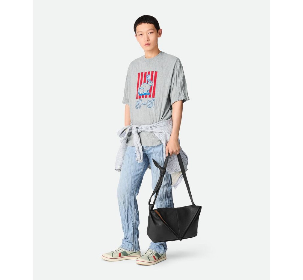 조절 가능한 스트랩과 매듭 디테일이 있는 그레인 송아지 가죽 소재의 숄더백입니다.