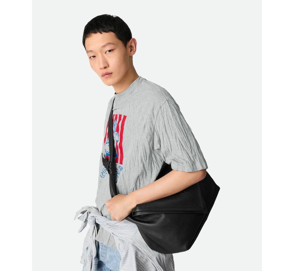 – 매듭으로 조절 가능한 스트랩이 달린 그레인 송아지 가죽 숄더백