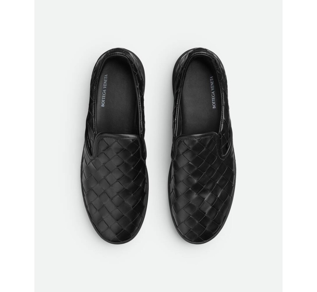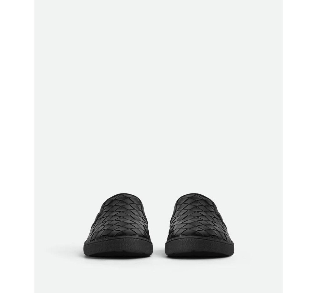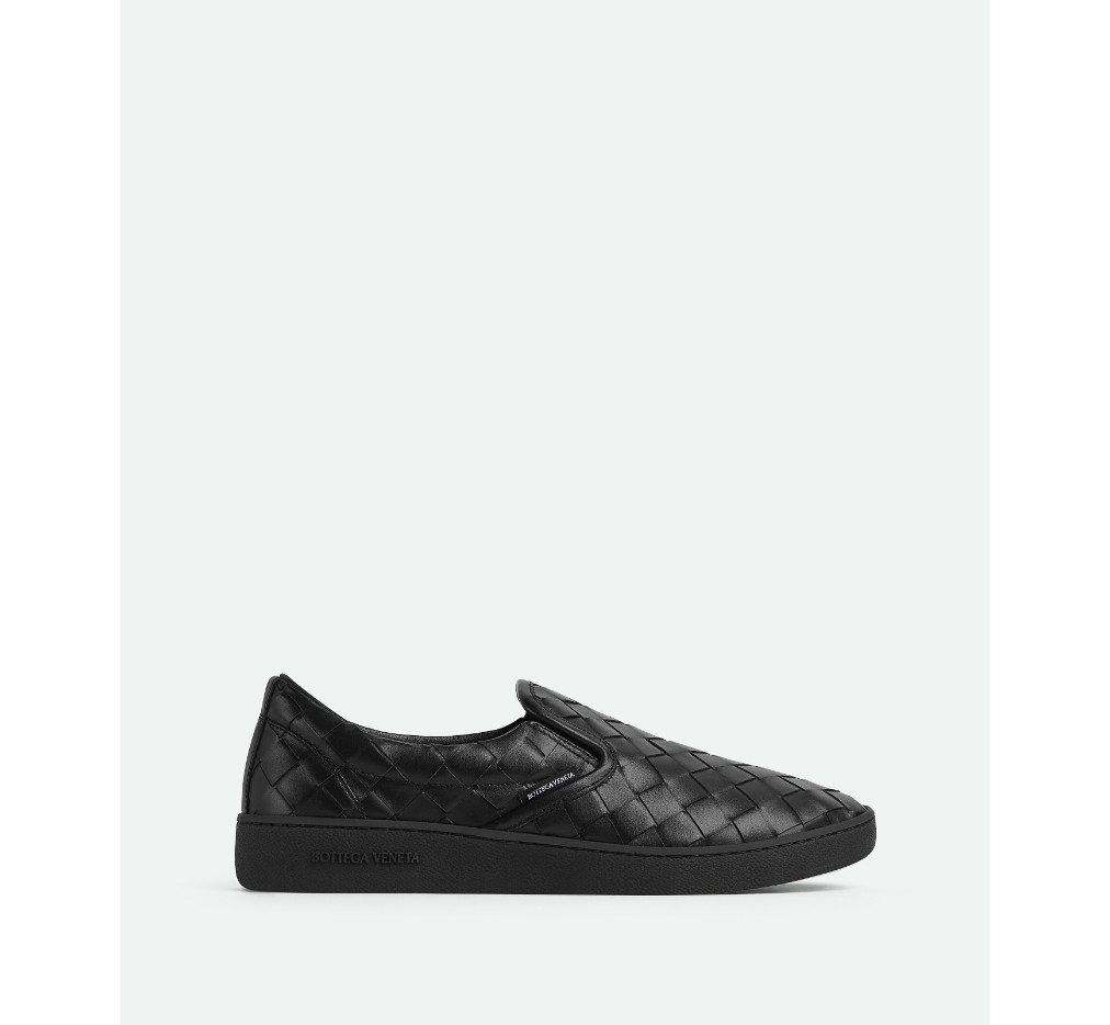 부드러운 송아지 가죽으로 전면 인트레치아토 기법을 구현한 슬립온 스니커즈입니다.– 인트레치아토 가죽 슬립온 스니커즈