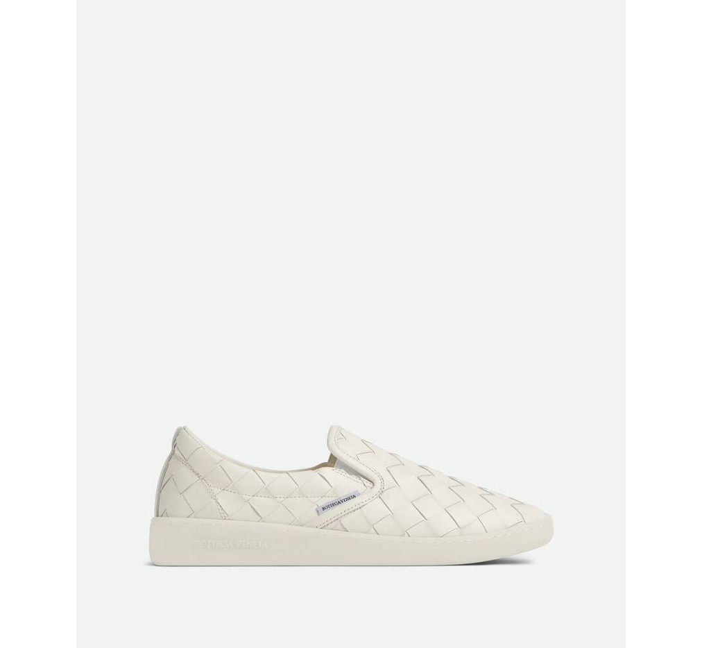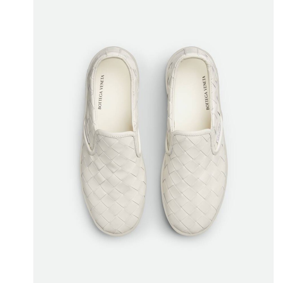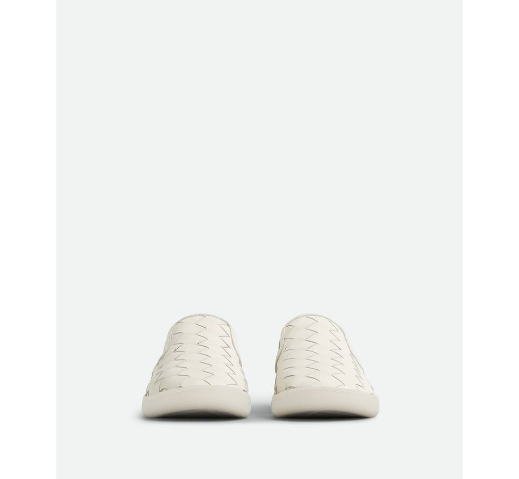 부드러운 송아지 가죽으로 전체에 인트레치아토 기법을 적용한 슬립온 스니커즈입니다.
