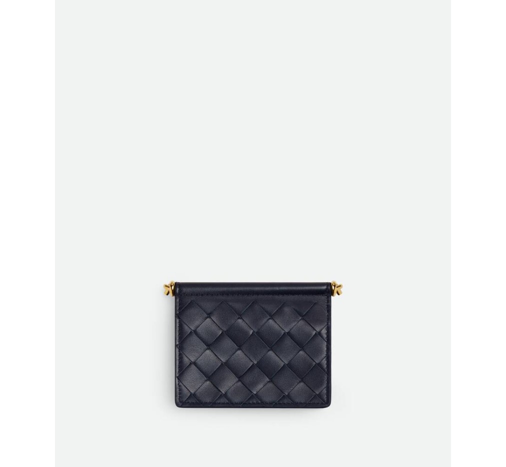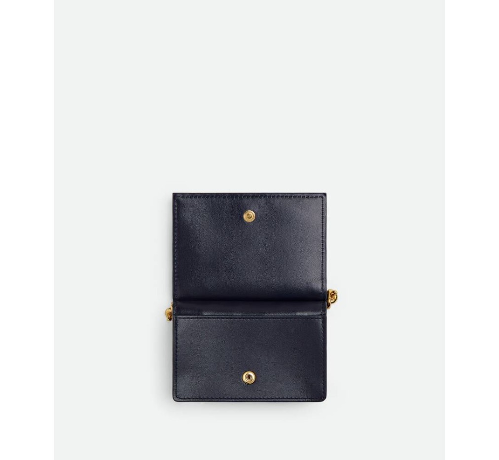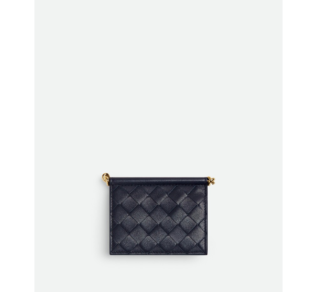 인트레치아토 송아지 가죽으로 만든 명함 케이스로, 시그니처 매듭 디테일이 특징입니다.
