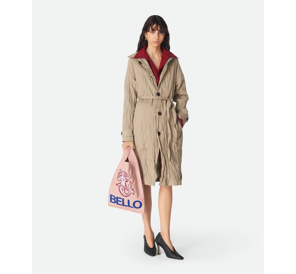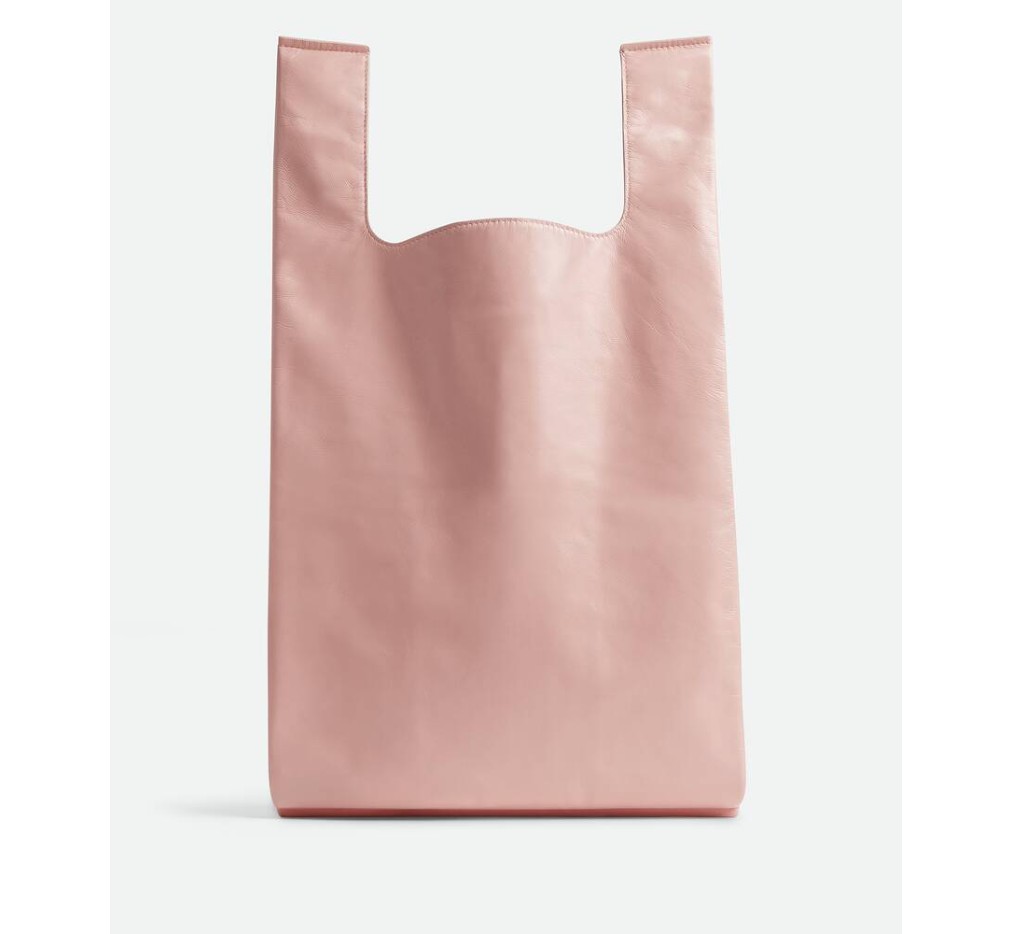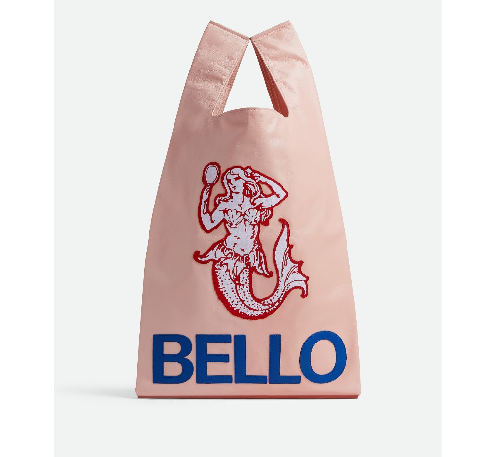 부드러운 나파 소재의 트롱프뢰유 토트백으로, 그래픽 토끼 모티브가 특징인 가죽 패치가 인쇄되어 있습니다.
